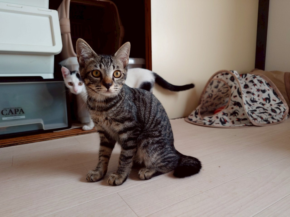とあるお家のお庭に母猫が連れてきた4兄妹のうちの1匹です。