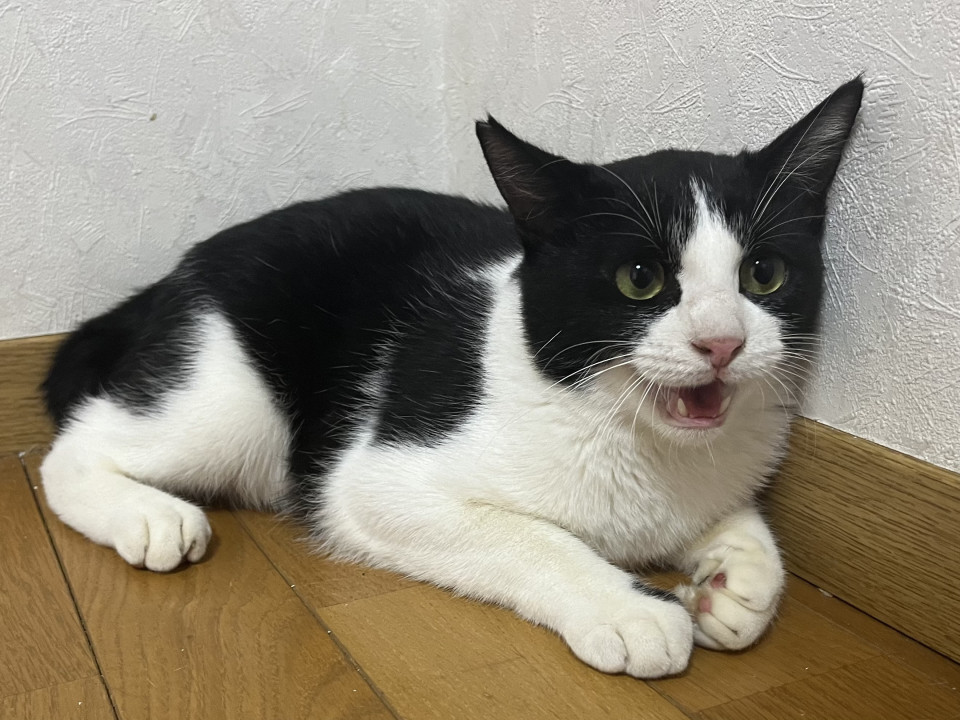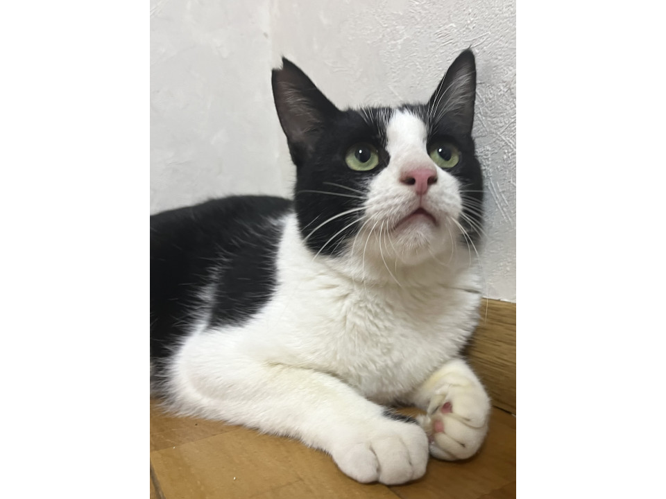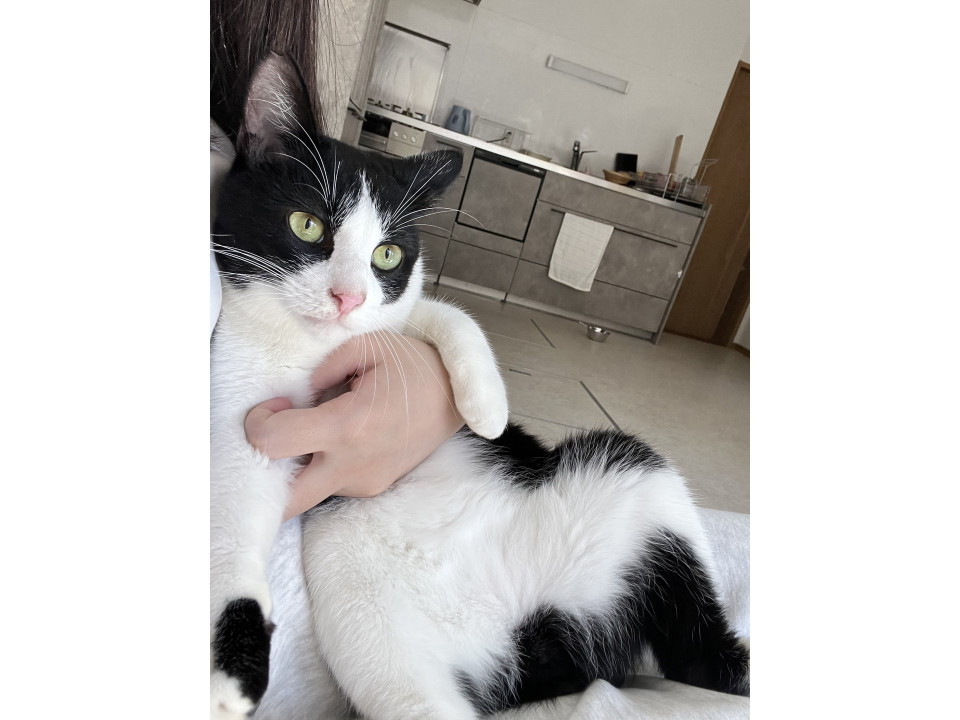 9月中旬にうちの庭に一突然あらわれたハチワレの赤ちゃん猫です。 体は細く、ぐったりしていて、口呼吸をしていて熱中症のような症状が出ていたので、急いで動物病院へ連れて行きました。 診てもらうとやはり軽い熱中症とのことで、点滴で少しずつ元気を取り戻してくれました。 ただ、先生のお話では、まだまだ月齢も若く、このまま外に戻しても自力では生きていけないとのことでした。 野良として過ごすには体も小さく、危険も多いため、一時的に我が家で保護することにしました。 ただ我が家はすでに保護猫が5匹いるので、部屋数が足りず、新しい里親様の助けが必要だと思い募集させてただきました。 とても人懐っこく、抱っこが大好きで小さな声でゴロゴロ甘えてくる可愛い子です。 この子のことを一生大切にしてくださるお家を探してあげたいです。