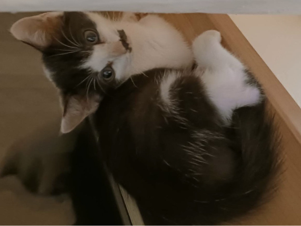 野良猫が、五匹の子猫を連れてきました。三匹保護できて、慣らしをし 一匹は里親さんに引き取られましたが、二匹残っています。我が家には六匹の保護猫がおり、外猫(避妊、去勢済)が七匹いるので、この子達は、優しい里親さんにもらって欲しいと思っています。