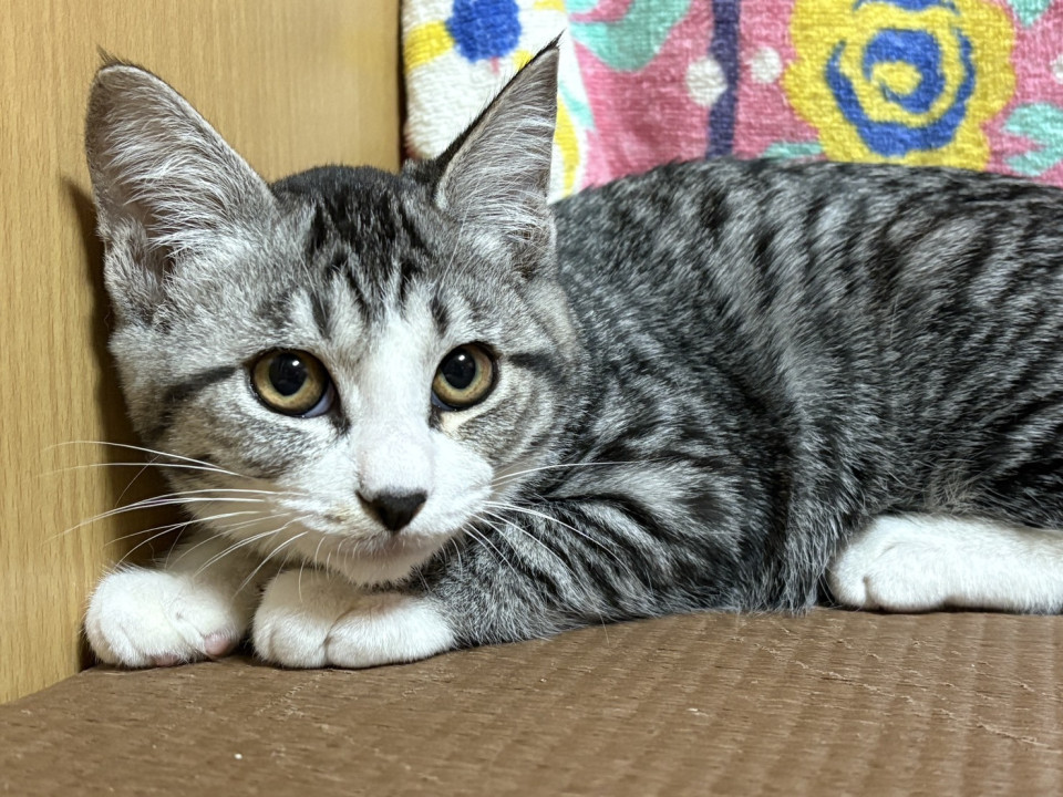 少し怖がりさんなので、ゆっくり家族になっていただけたら嬉しいです!
