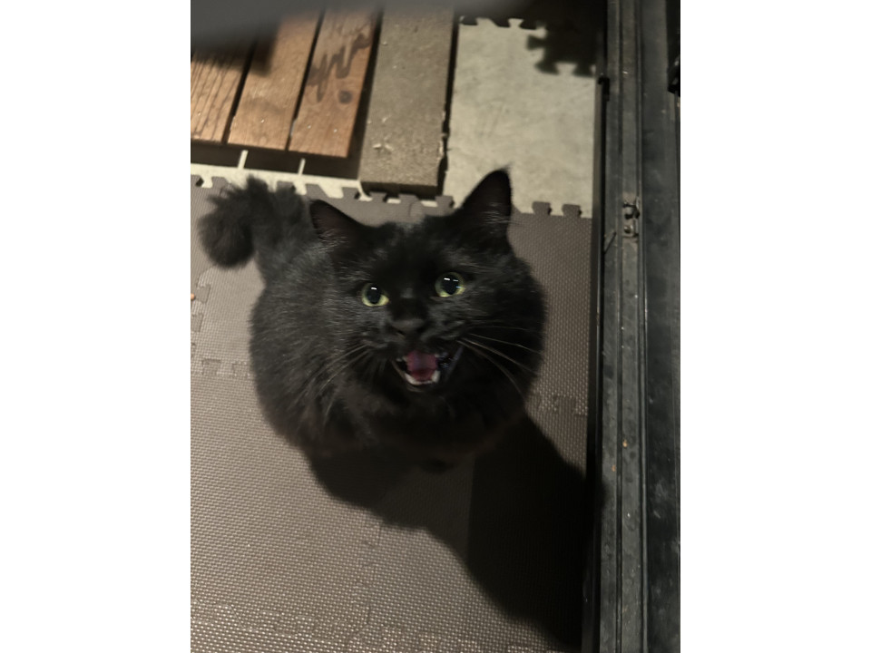 黒猫ですが、少し白い毛等が混ざっていて、毛足が長くムクムクしています。