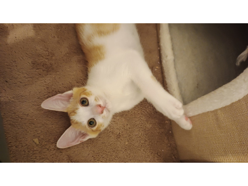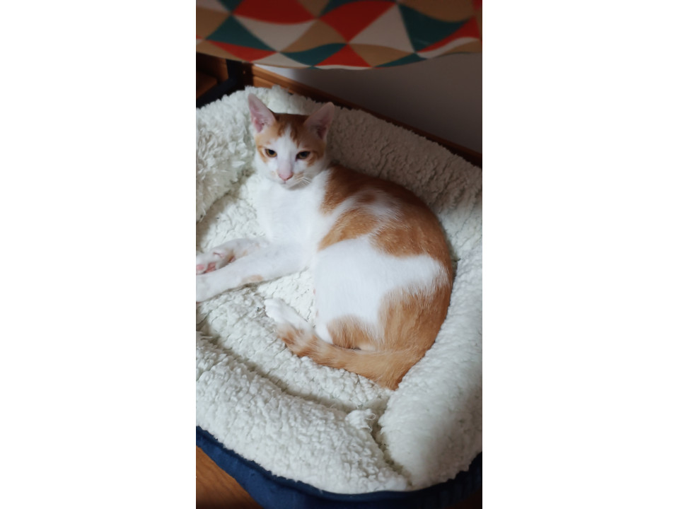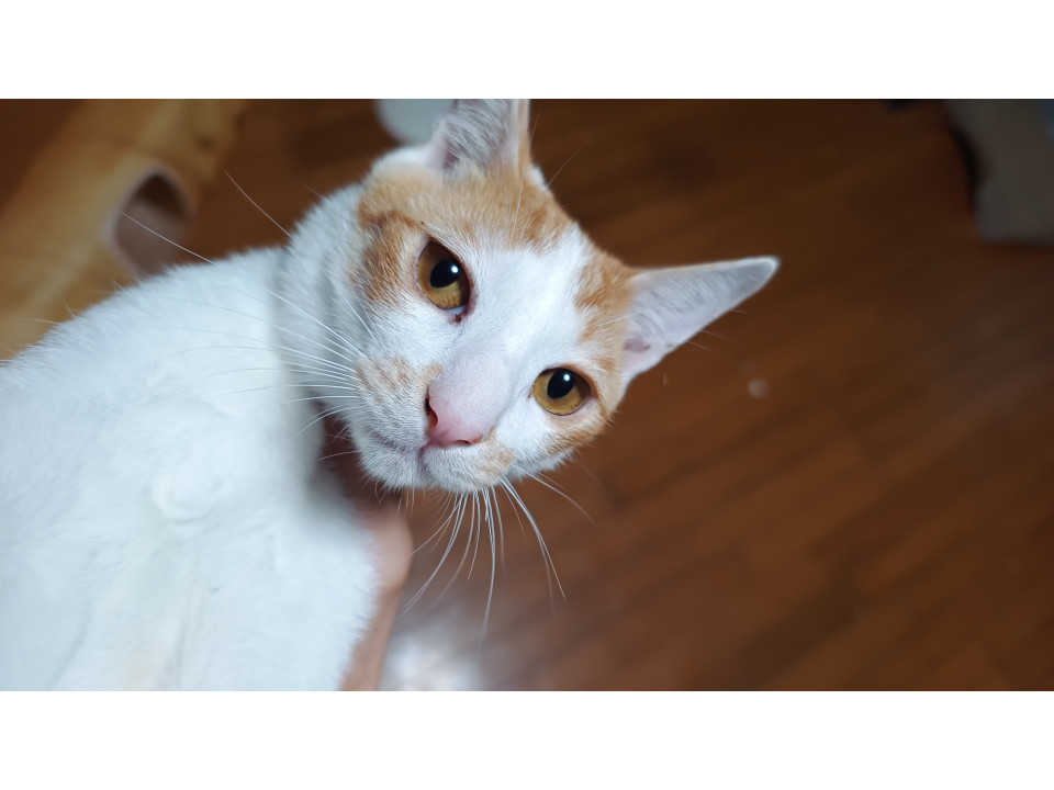 ごはんの気配を感じると、かわいい声でアピールしたり、そっと近寄ってきたりする愛嬌たっぷりの男の子です。
