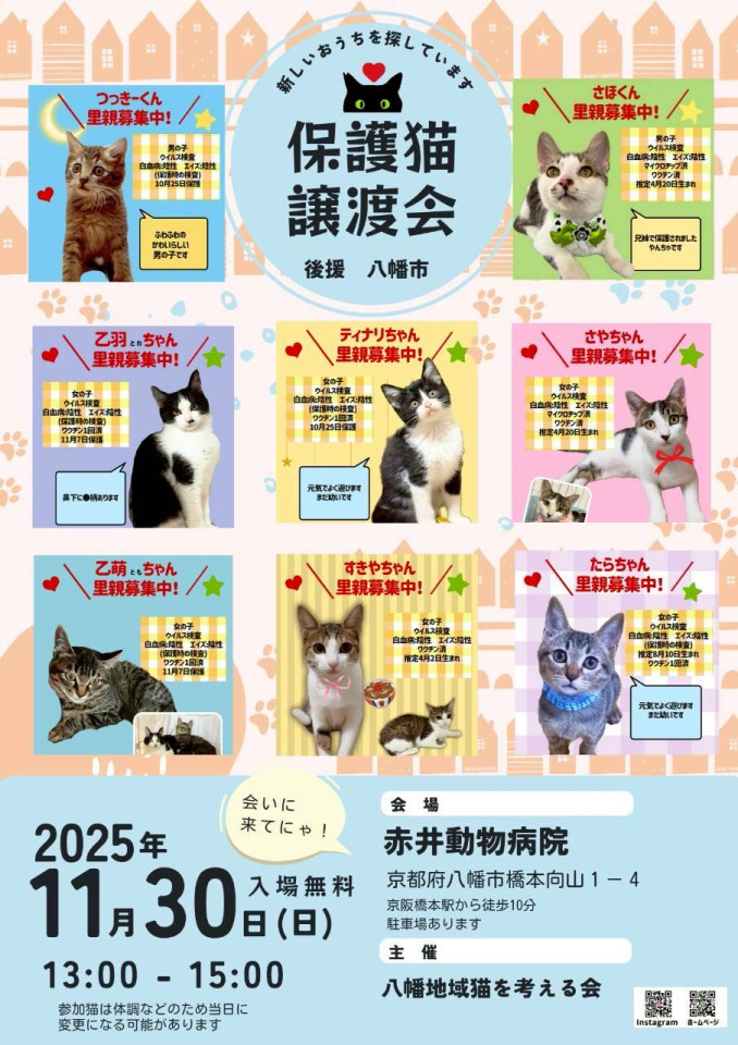 ・ワクチン済み飼育者のお母様がご病気で飼育が困難になった為、里親募集のお手伝いをさせていただくことになりました。