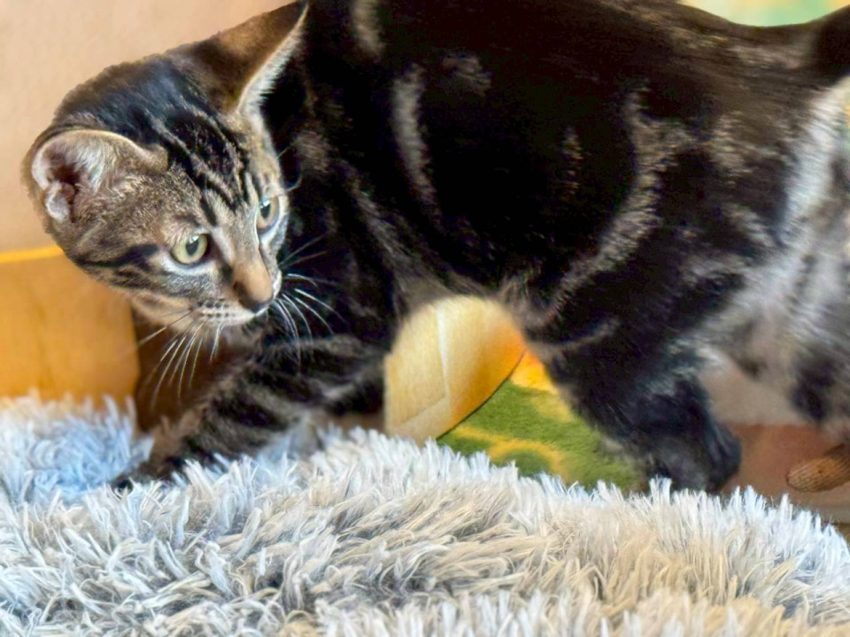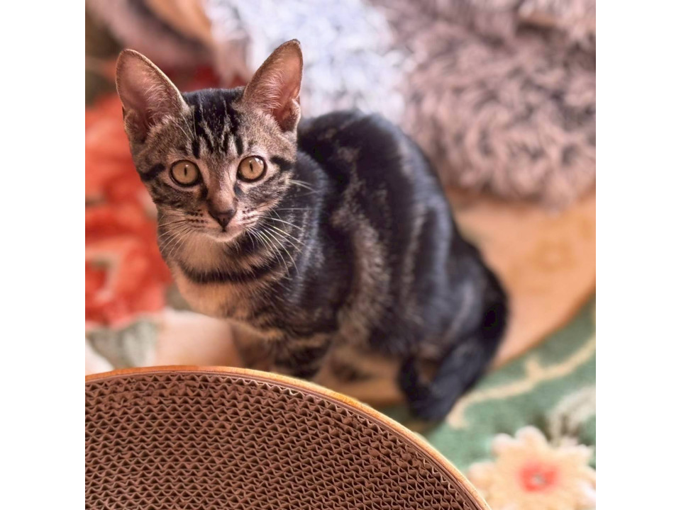 性格はとても人馴れしています。今は私のストーカーでずっと付いてきます。4兄妹とっても仲良しで玩具で遊ぶのが大好きです。