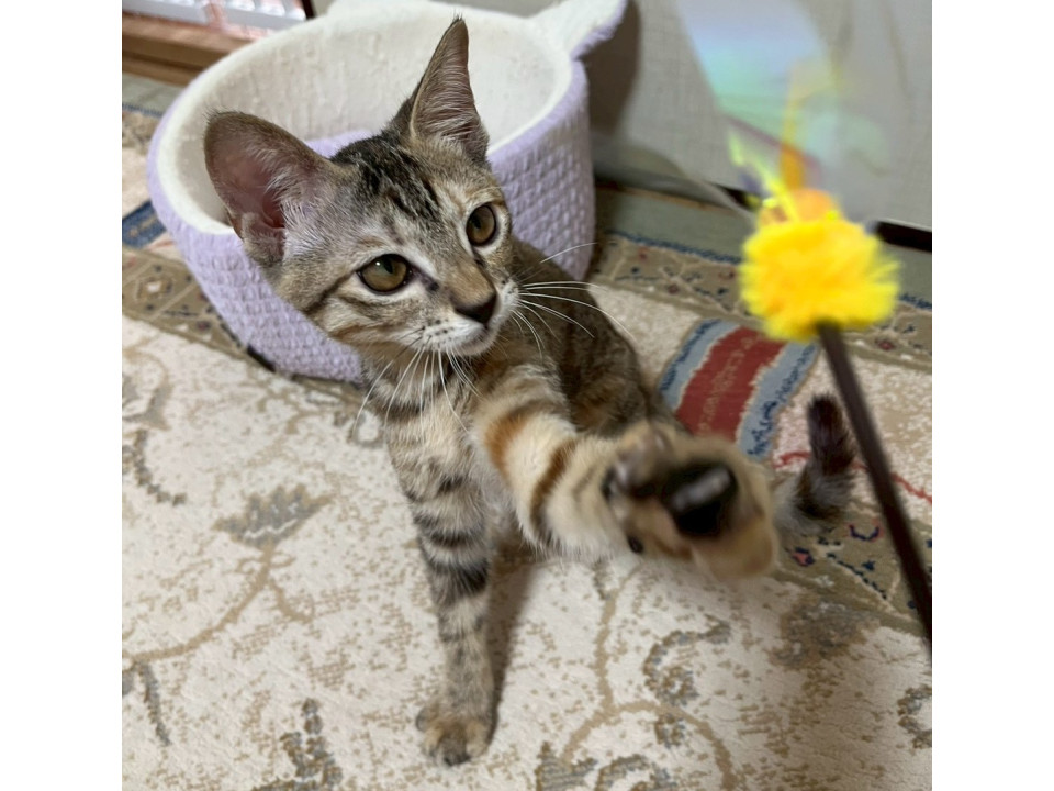 おもちゃが取れない時、こっち、こっち〜と可愛い声で鳴いて呼び寄せます。