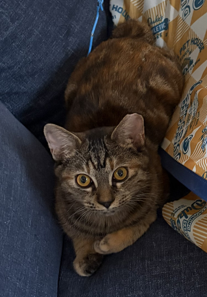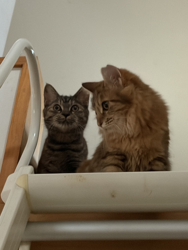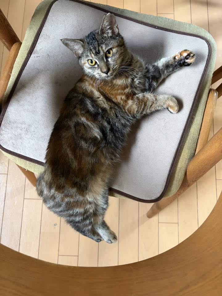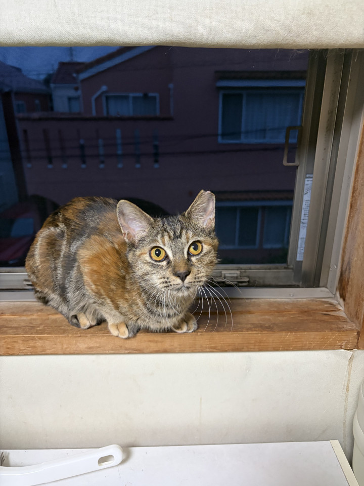 運動神経が良く、高いジャンプも得意!先住猫がやっていることを学びとり、知性がキラッと光るサビ猫さん。
