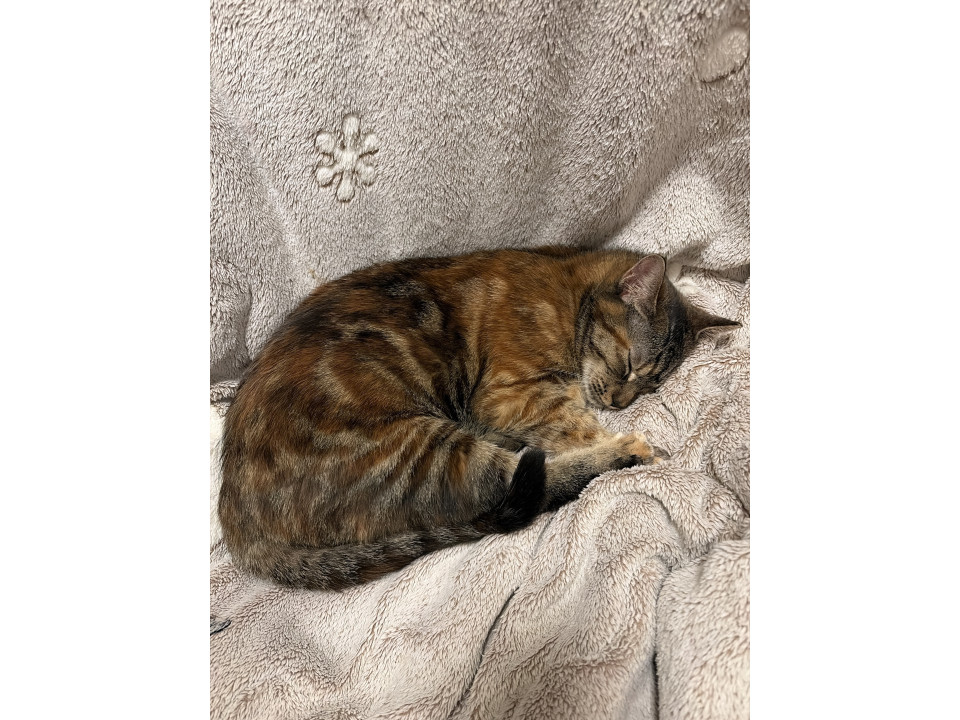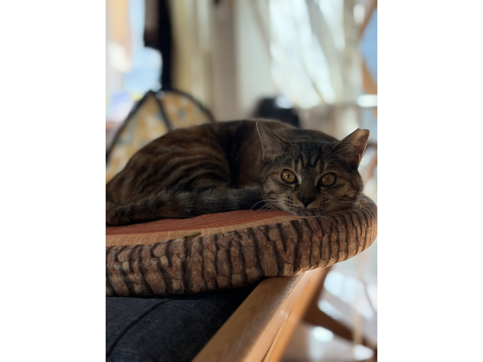 運動神経が良く、高いジャンプも得意!先住猫がやっていることを学びとり、知性がキラッと光るサビ猫さん。
