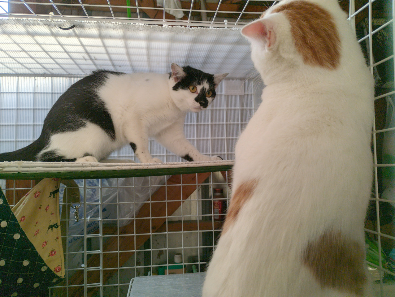先住猫がいるため小屋にいるスペースしかなく、長期的な飼育は難しい状況です。