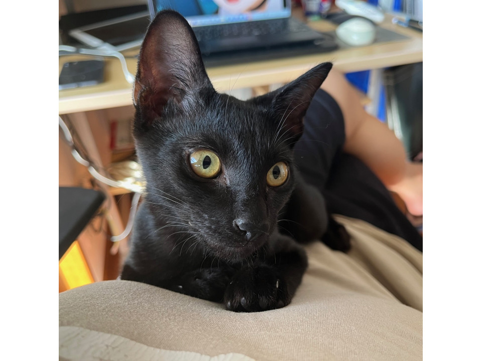 預かり2日目から膝の上、体の上に乗ってくるほど人が大好きです。