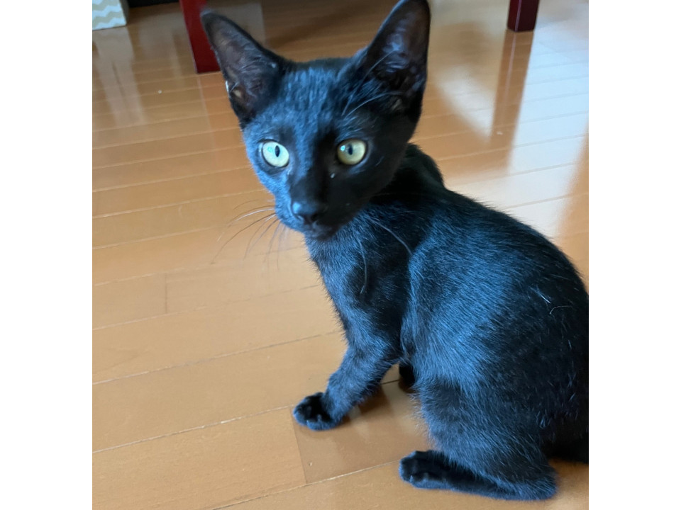 真っ黒の格好いい、元気いっぱいの男の子です。