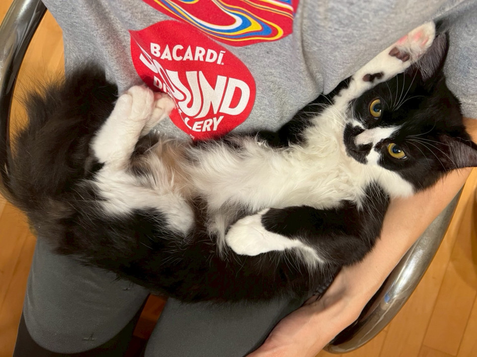 まだ人が少し怖いようで、逃げてしまうこともありますが、お姫様抱っこしながら、