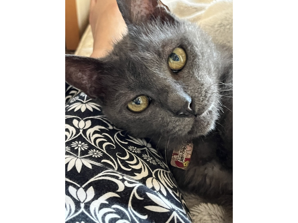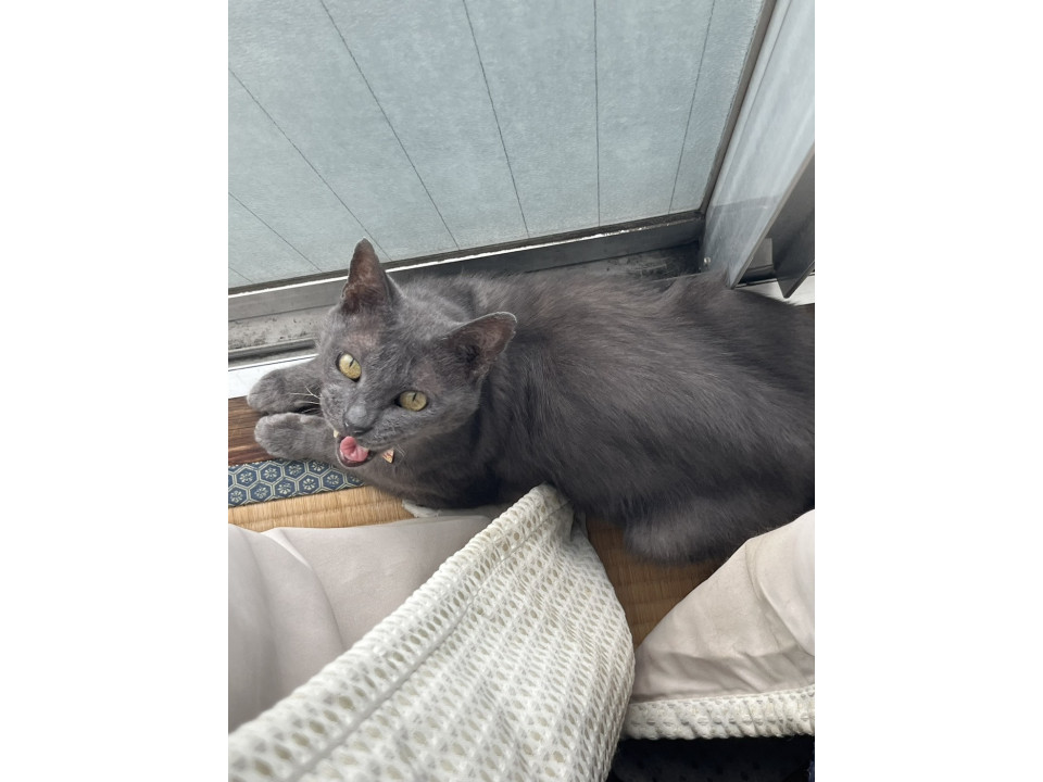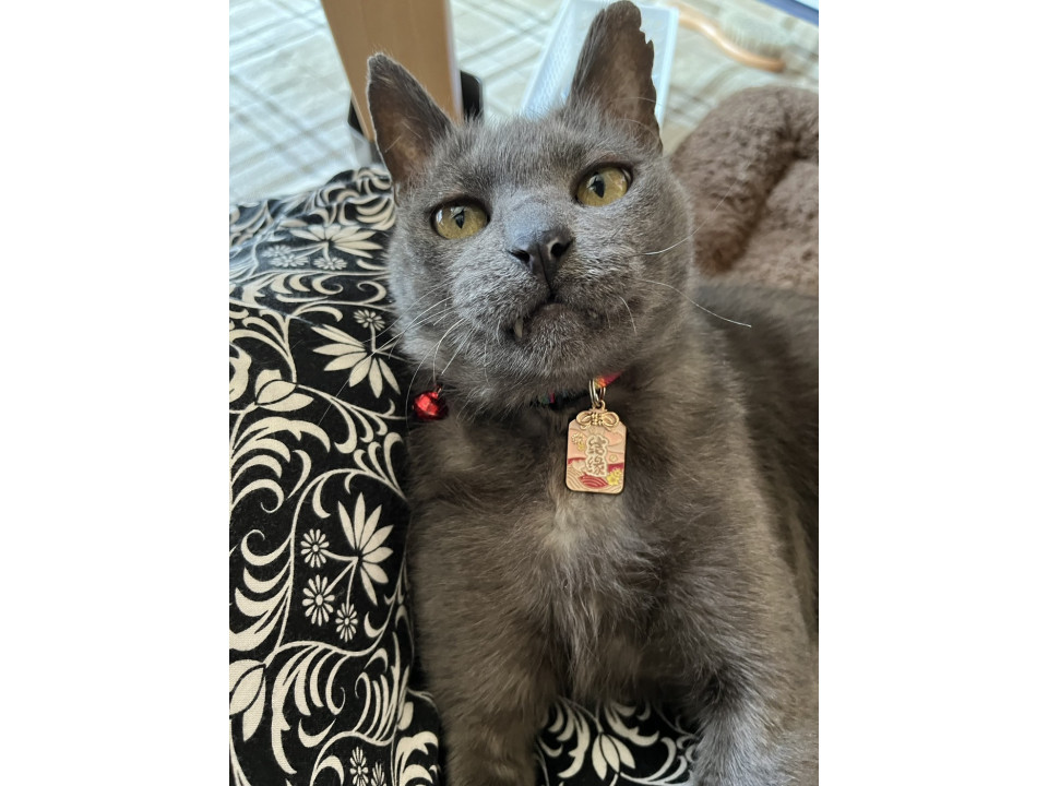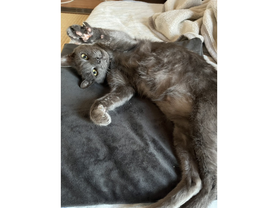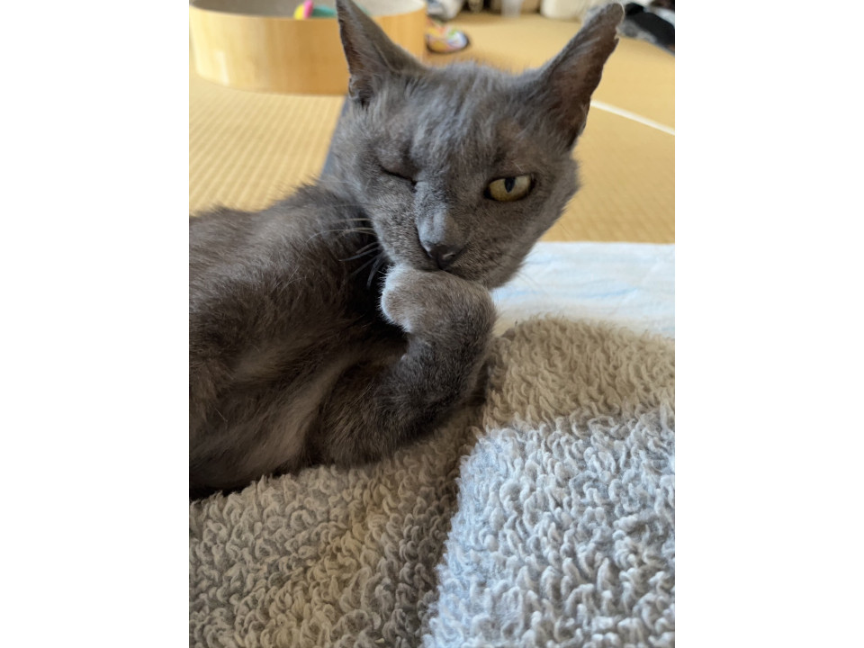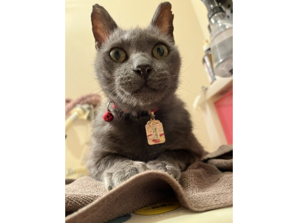 可愛いブルーグレーのフクくんです。毛並みがとても綺麗になりました。