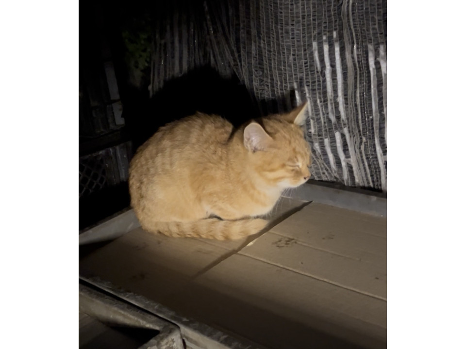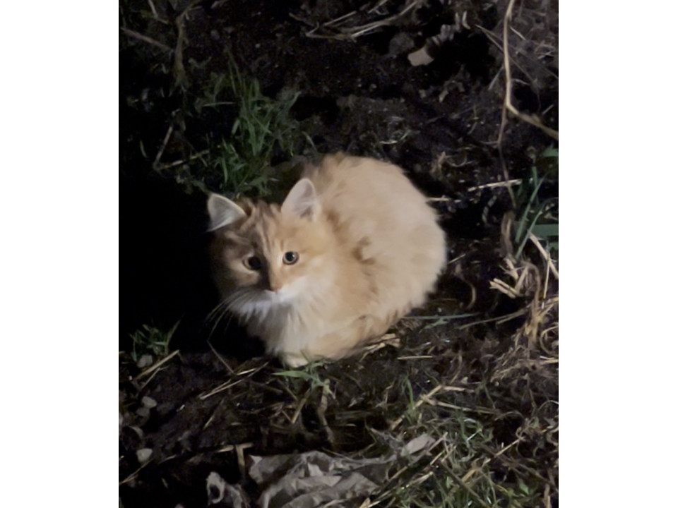 らいの方は、薄い茶色で、首周りがふさっと白い毛です。トラの方は濃い色のチャトラです。どちらも数秒抱っこできます。