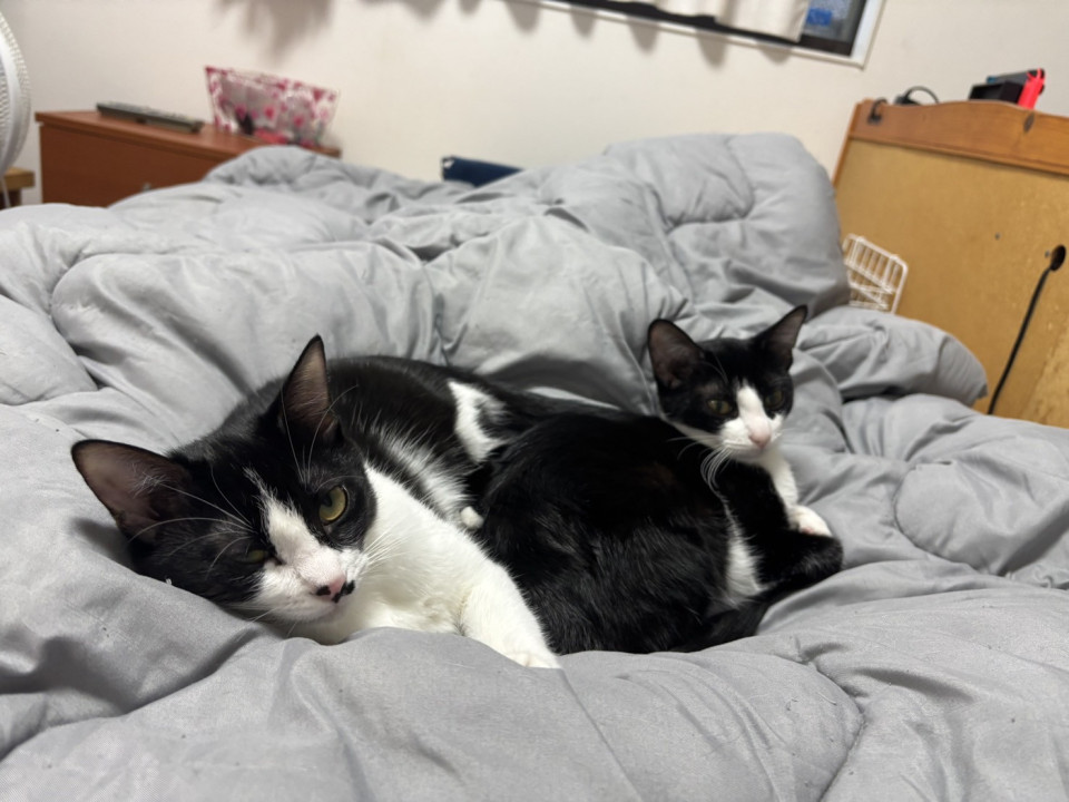 3頭子猫がいたうちずっと大人猫にくっついてた警戒心強い子でした。