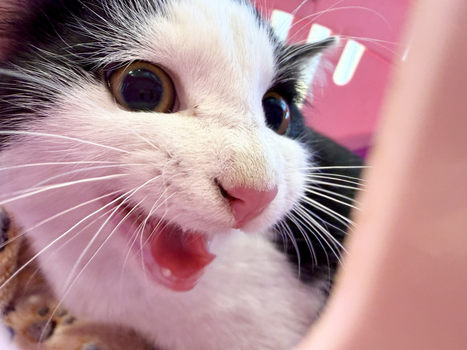 ハチワレの広い可愛いお顔の白黒猫