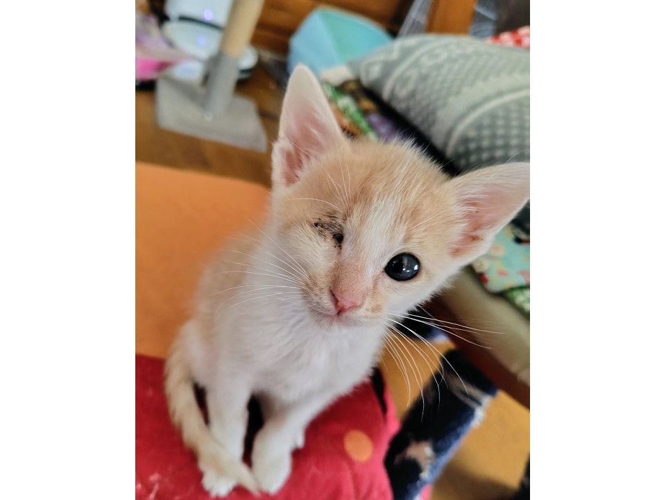 獣医さんは、眼球があるので、治療をしていれば治るとの診断です