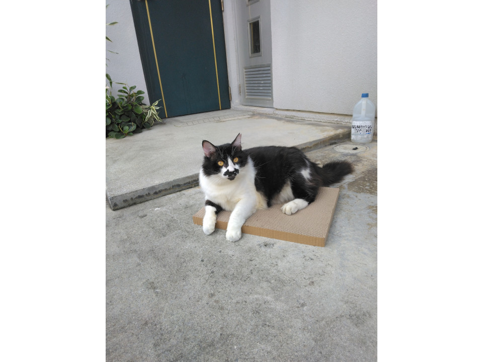 鳴き声も個性的で外でお腹を出して寝る位、警戒心はあまりなく体も普通の成猫よりは大きいです