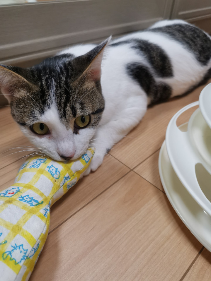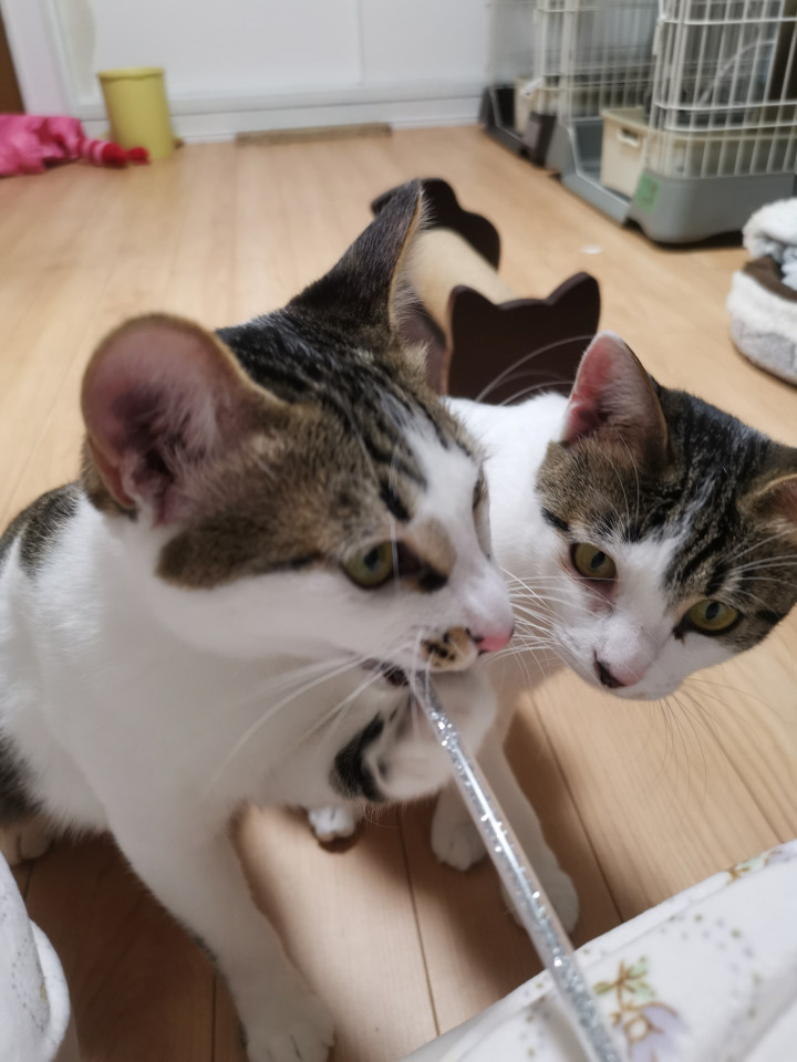 さほくんに遠慮がちに遊んだり甘えに来てくれます。