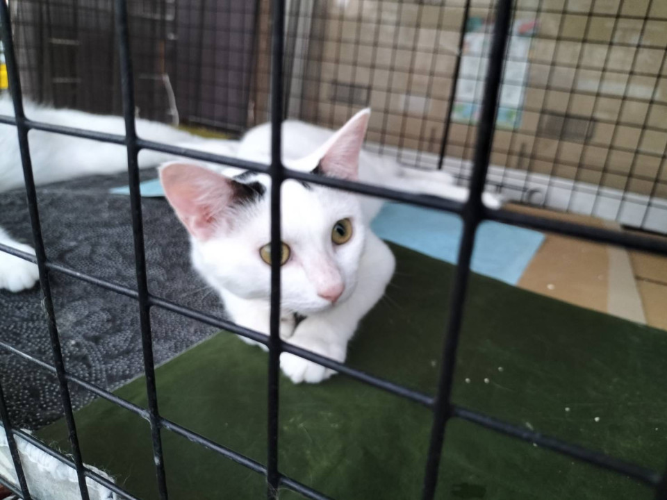 しかし保護主さん宅には既に複数の飼い猫がいるため家の中で保護が出来ないとのことで外のケージで過ごしています。