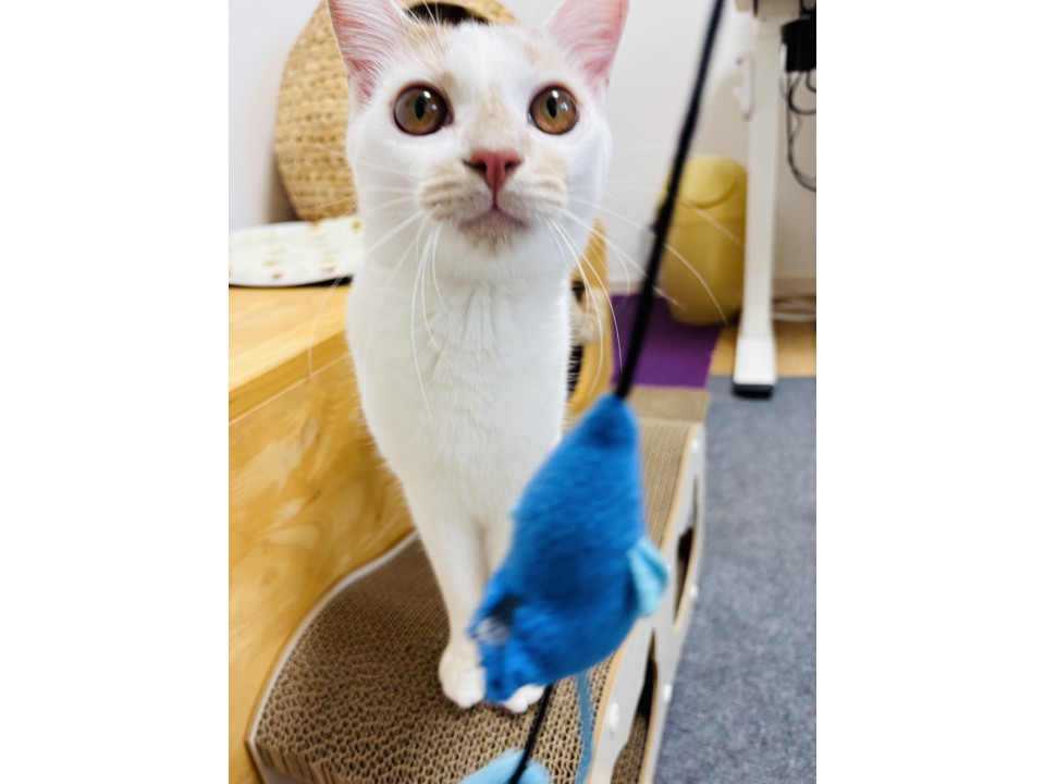 物音がするとビビリで隠れてしまいますが、おもちゃには夢中!