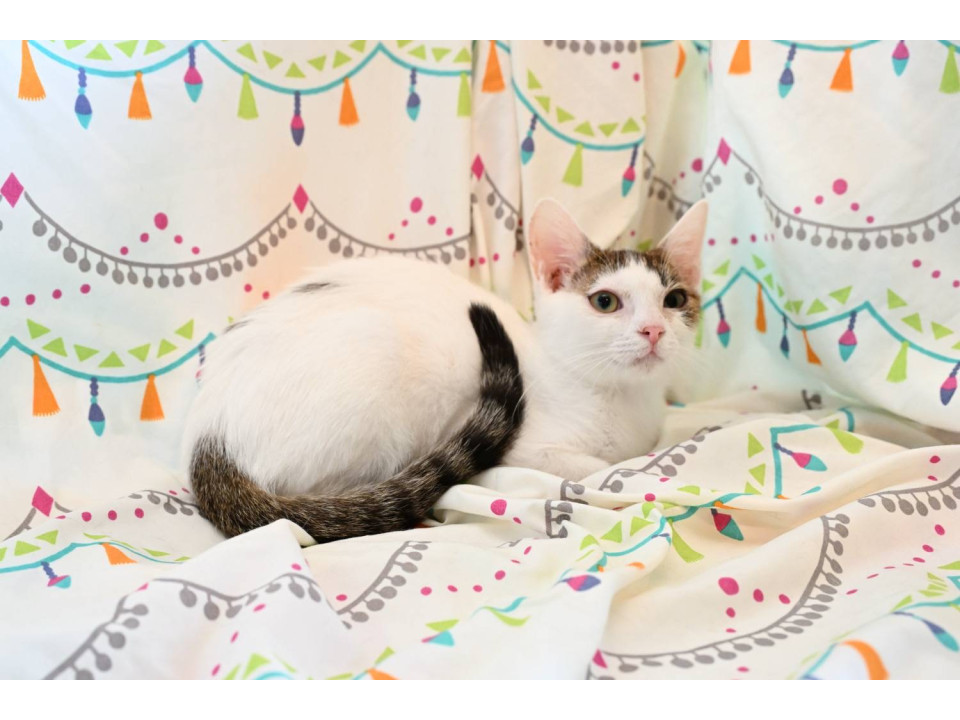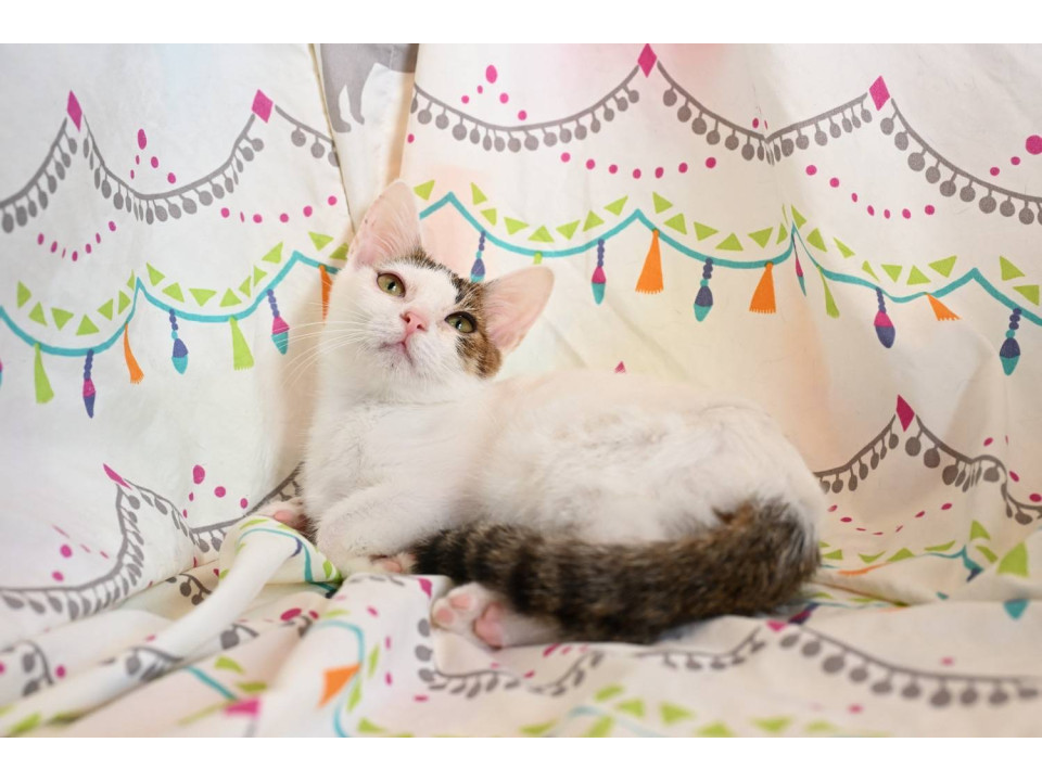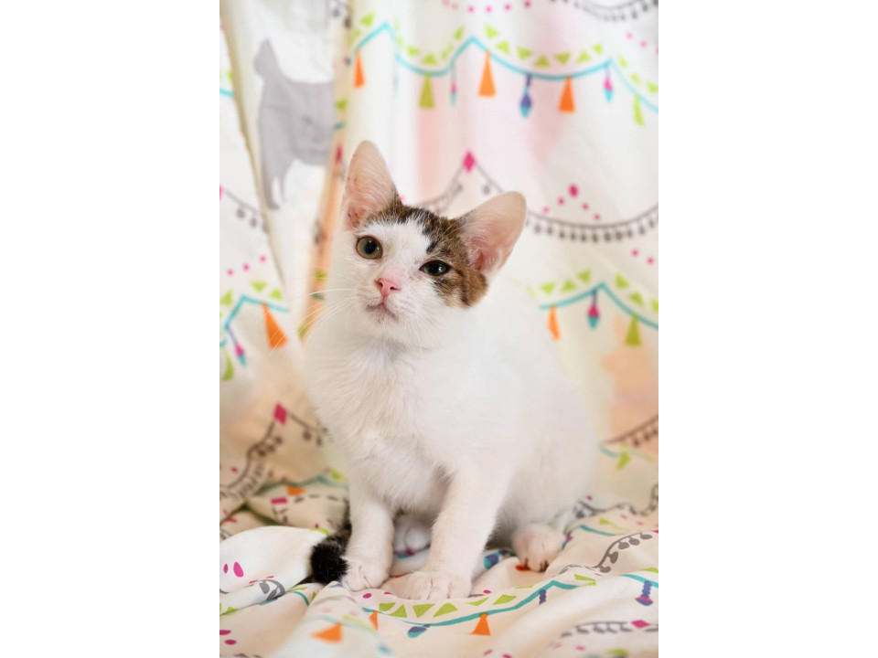 保護時は痩せ細り元気もありませんでした。今は室内生活にも人にも慣れ、体をなでるとゴロゴロとノドを鳴らします。仕草がとても愛らしい子です。初めての場所でも比較的落ち着いて過ごせるタイプで他の猫とも上手につきあえます。抱っこもできます。環境に慣れると、やんちゃさも見せてくれる明るい性格です。