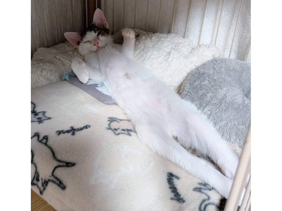 外で暮らしていた猫親子、母猫が交通事故で亡くなってしまいました。ひとり残されていたところを保護しました。