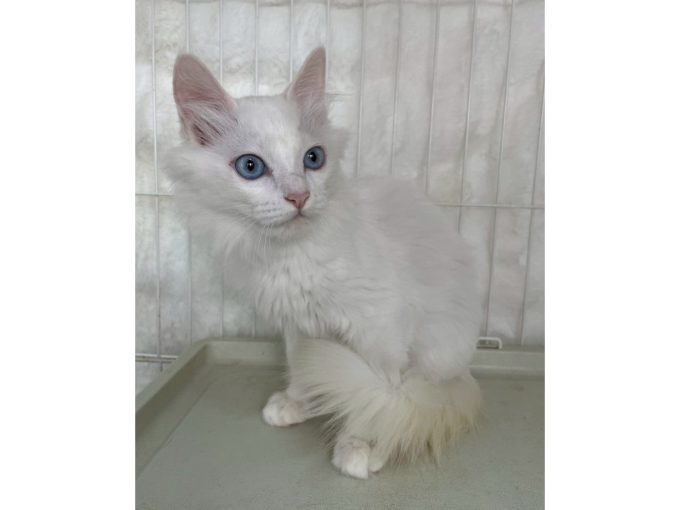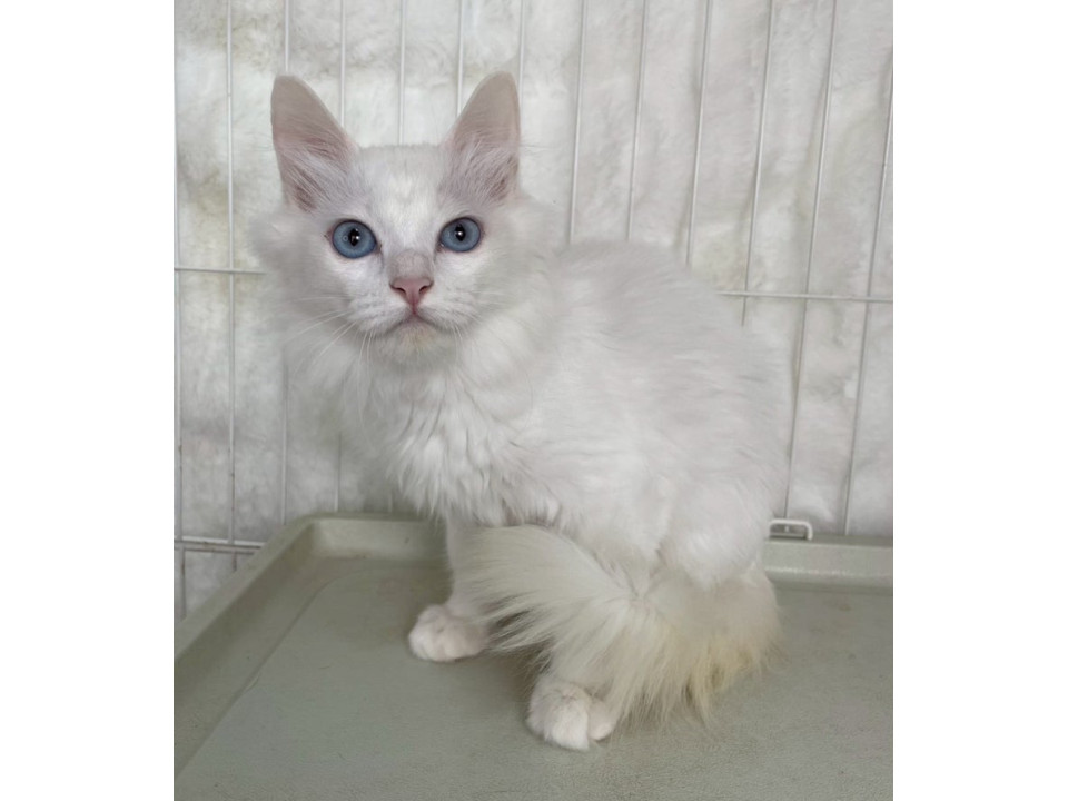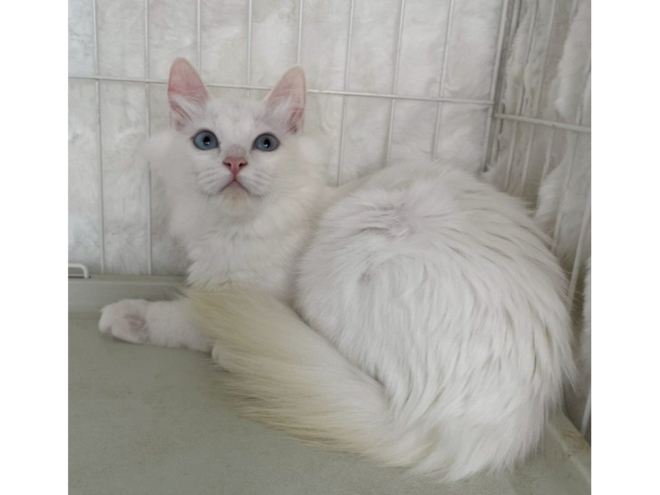 ブルーアイで尻尾だけ少し茶色ががってます。