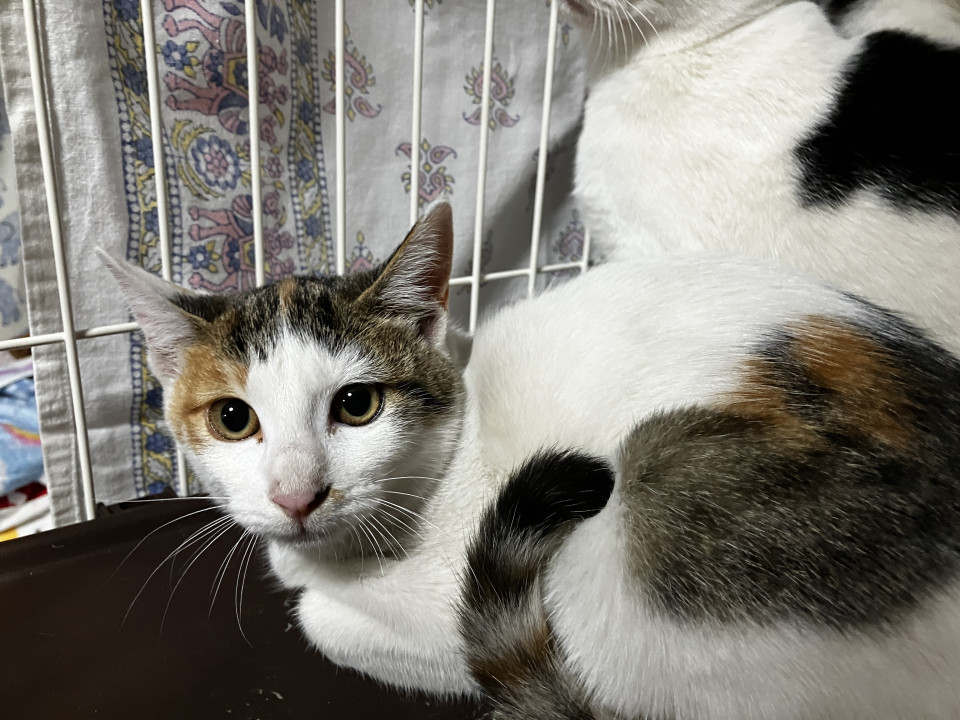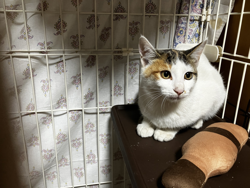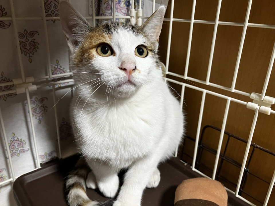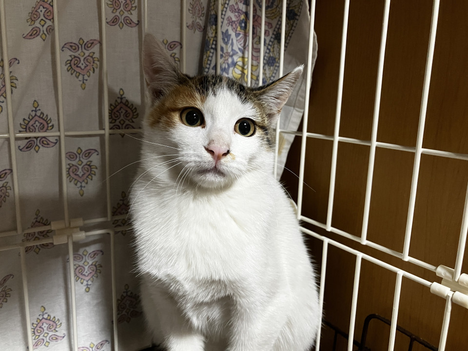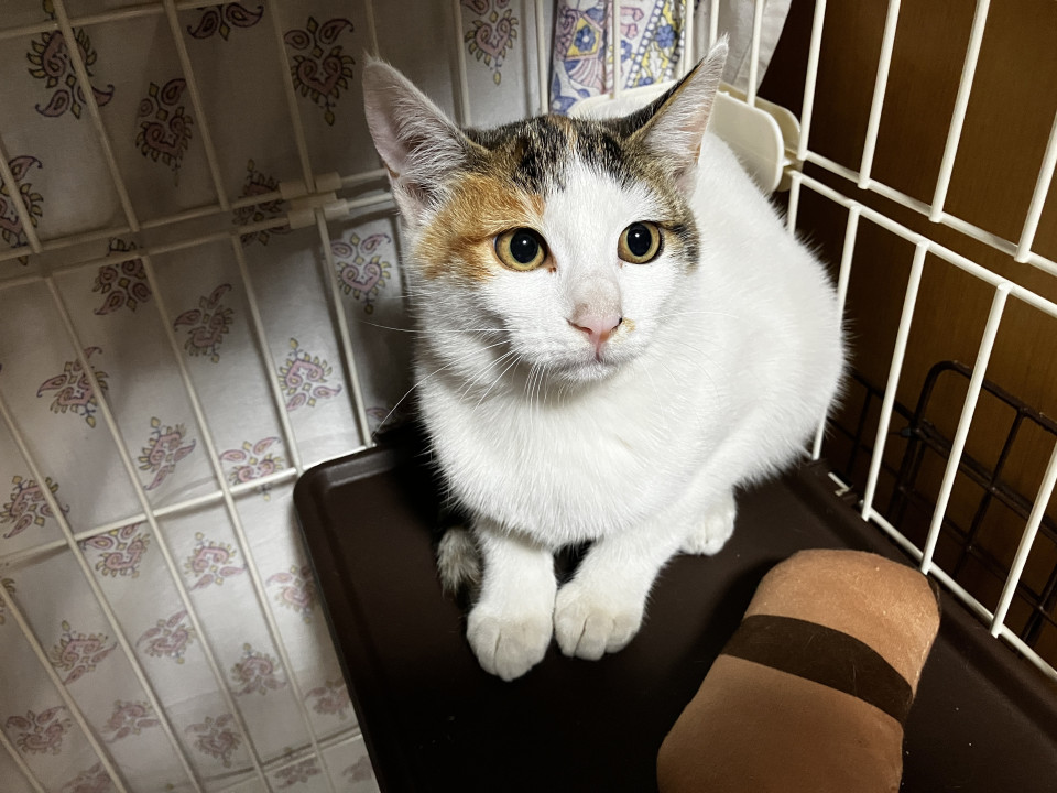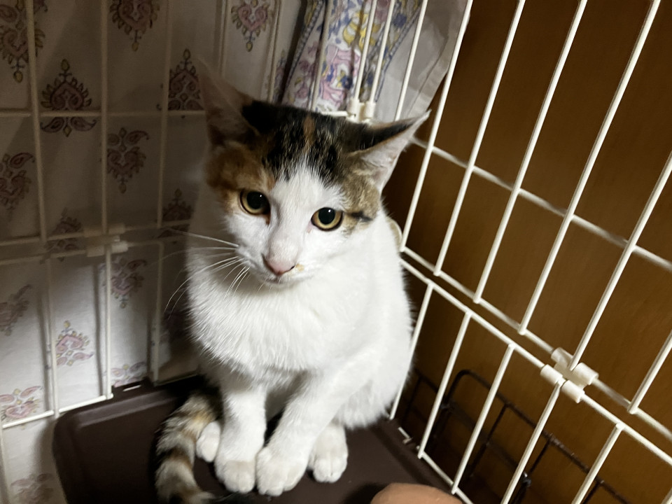 おとなしい、優しい子です。被毛は美しい白三毛です。