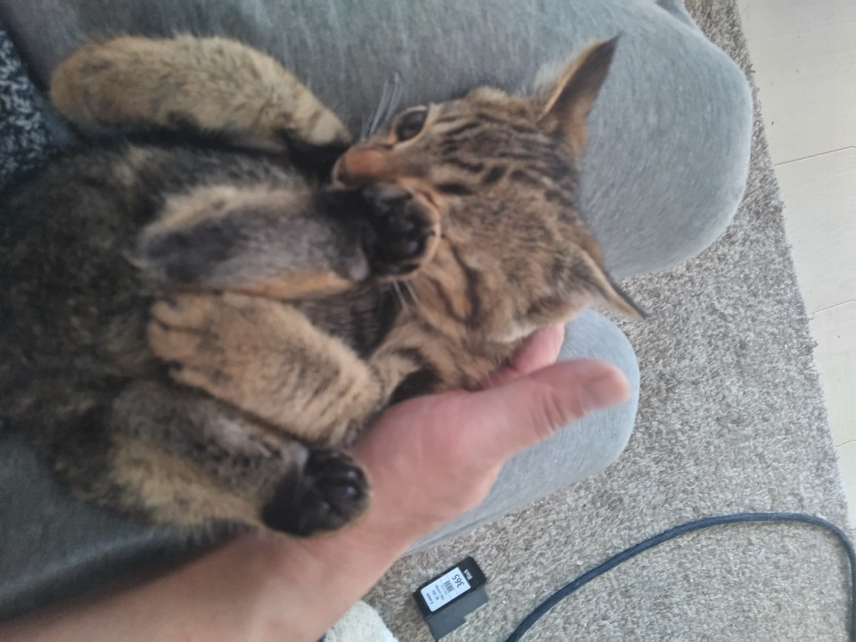 臆病さんなのか、大胆なのかまだ判断付きませんが、いたずらっ子なのは分かりました。(仔猫なので当然と言えば当然なのですが・・・)保護2日目で既にキャットタワーに挑戦して3日目(11月23日)には上から2番目のスペースでお昼寝しています。