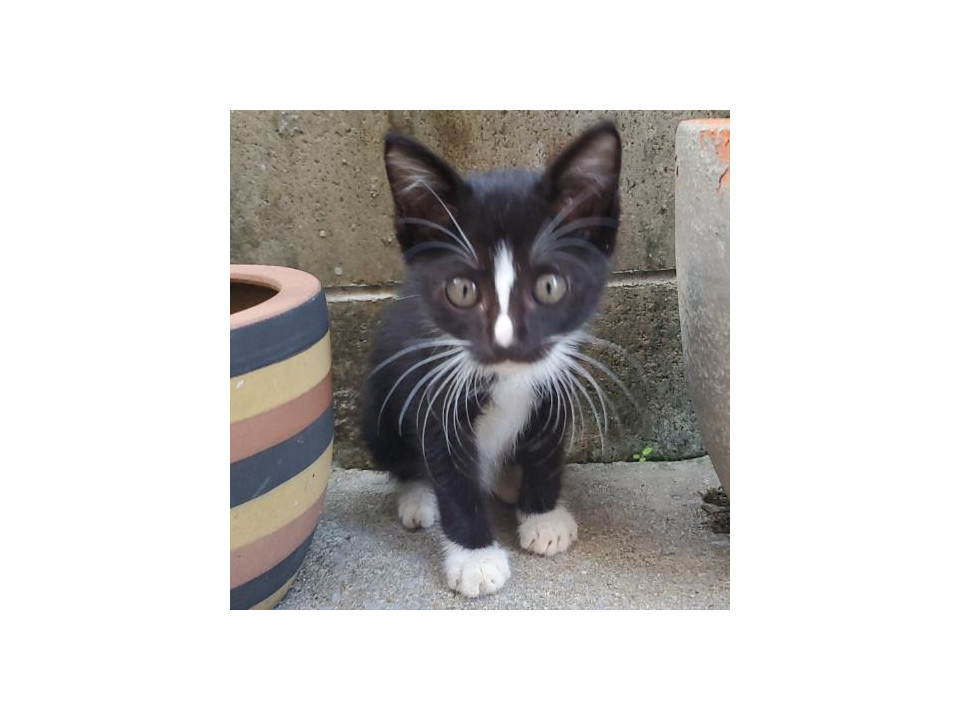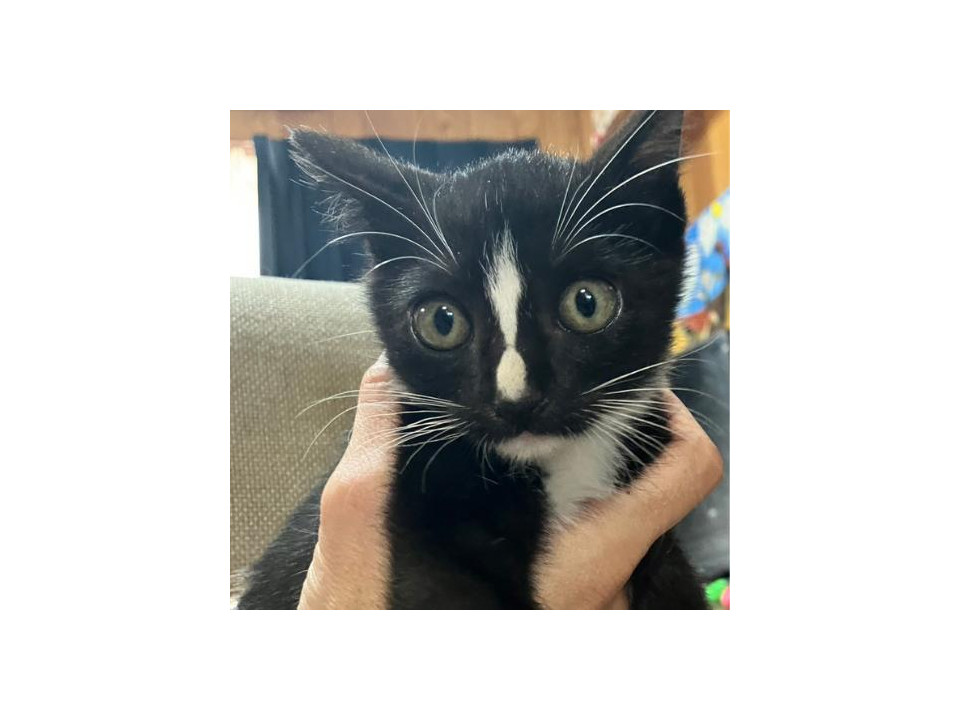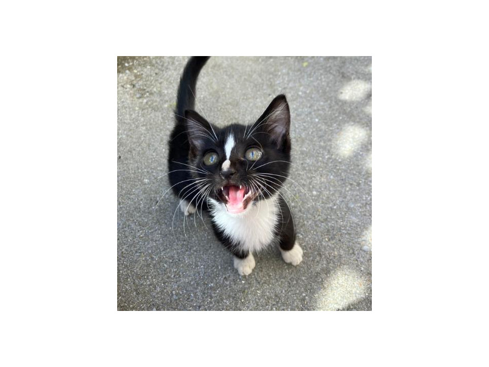 お顔の模様が特徴的で、可愛いハチワレ子猫ちゃんです❤️