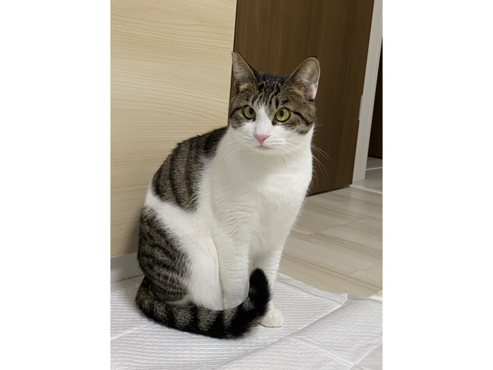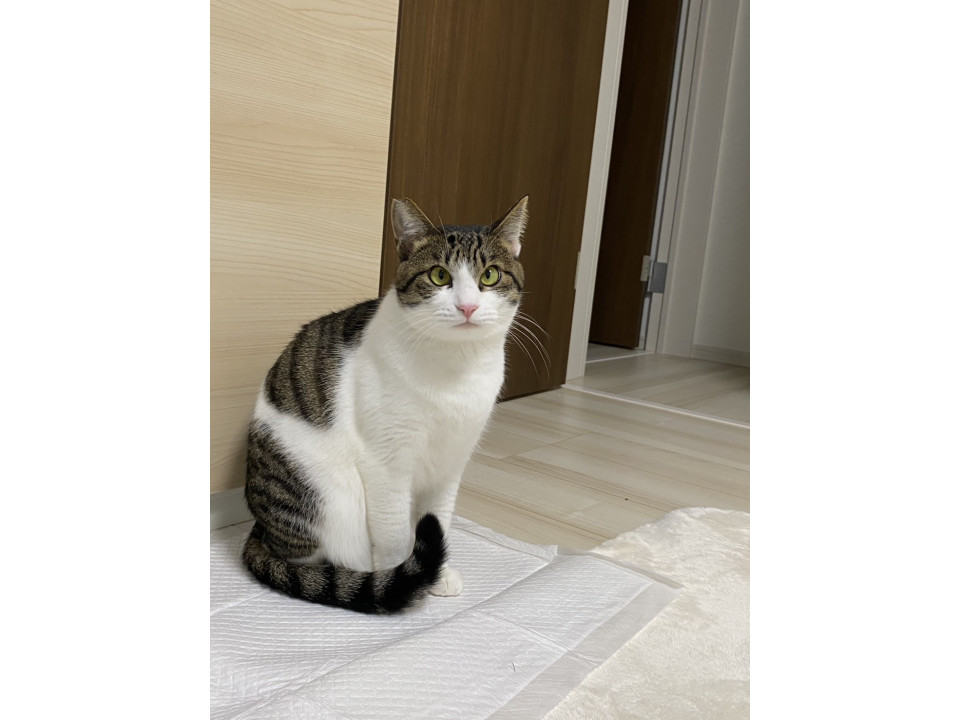 とっても穏やかで他の猫ちゃん共仲良くしています。1匹で飼われてもまた猫ちゃんのお友達にも良いです。尻尾は長くて真っ直ぐです。