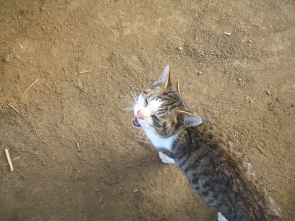 人になついているものの、かなり痩せていて毛並みも悪く、捨て猫と思いました。