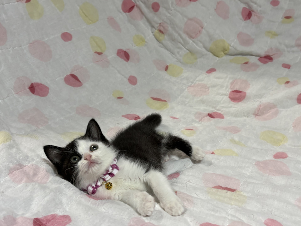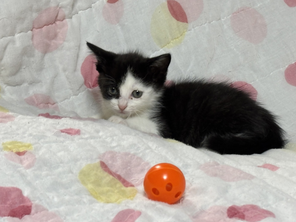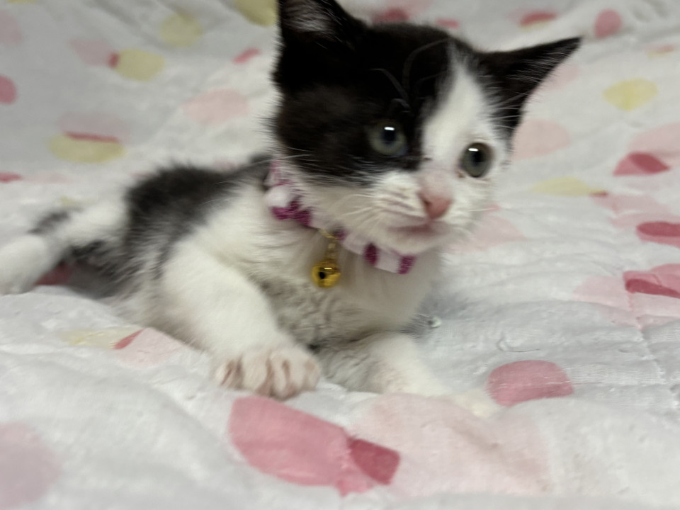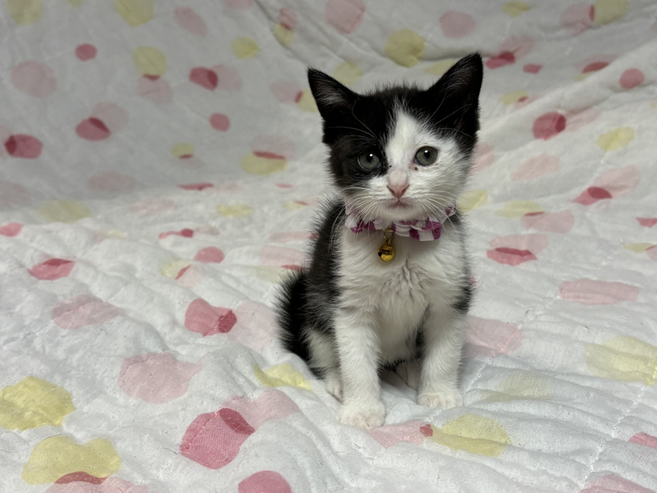 生後2ヶ月から2ヶ月半の女の子。三種ワクチン接種一回目済み、バイコックス予備駆虫済み、ドロンタール予備駆虫投薬済み、ブラベクト滴下済み、検便済み、猫免疫不全・白血病共に陰性