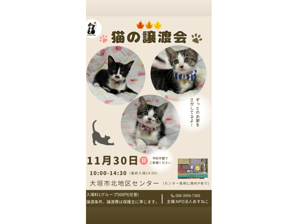 岐阜県内のへの譲渡の場合は交通費一律1000円(高山市のみ北陸と同一交通費)・滋賀県・愛知県の地域への譲渡の場合は交通費一律5000円のご負担をお願いします。