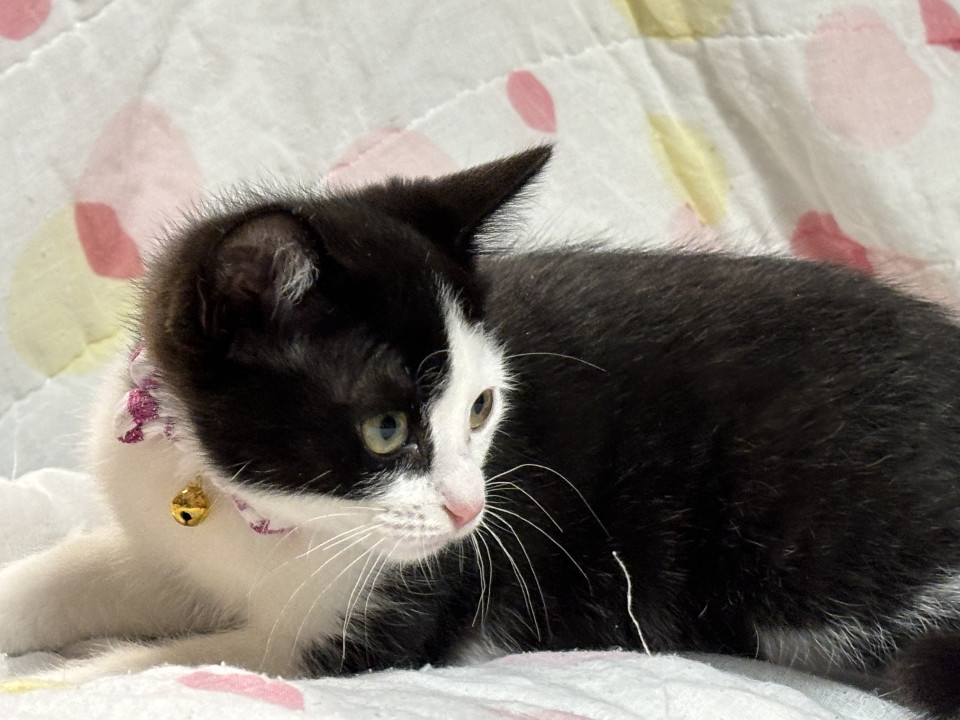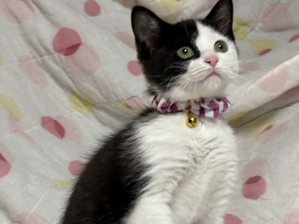 生後2ヶ月から2ヶ月半の女の子。三種ワクチン接種一回目済み、バイコックス予備駆虫済み、ドロンタール予備駆虫投薬済み、ブラベクト滴下済み、検便済み、猫免疫不全・白血病共に陰性