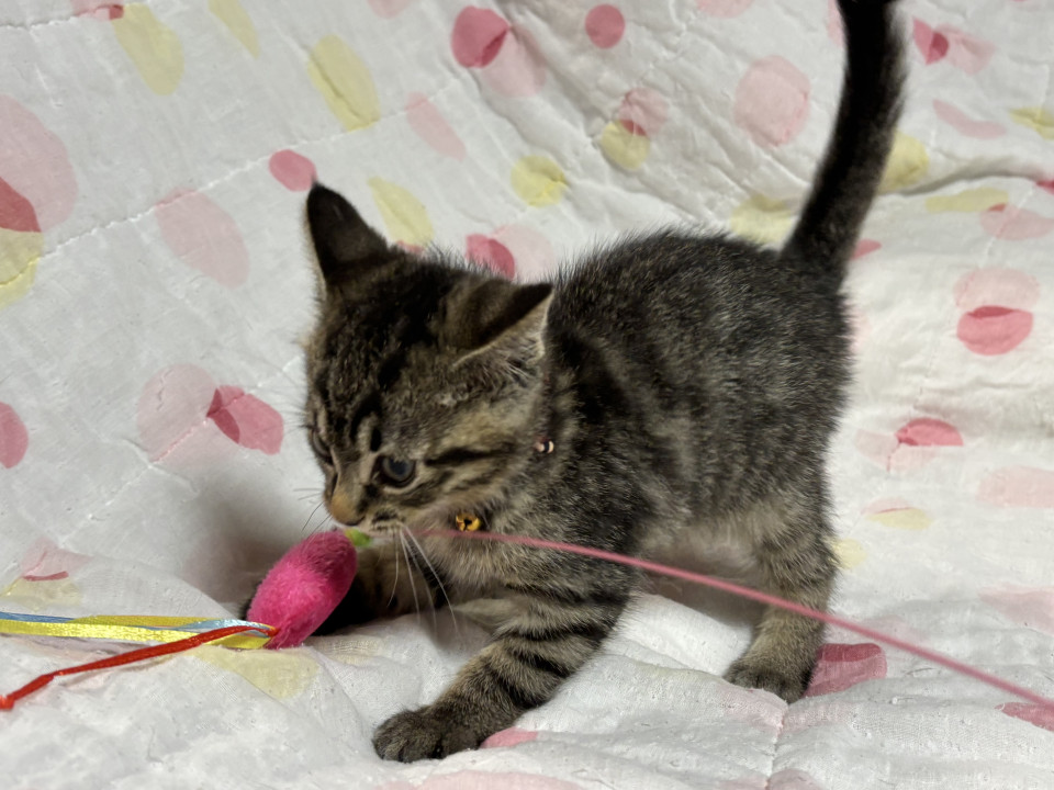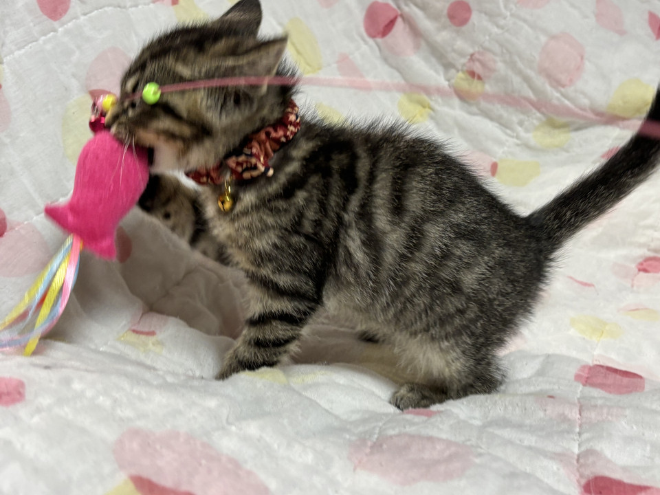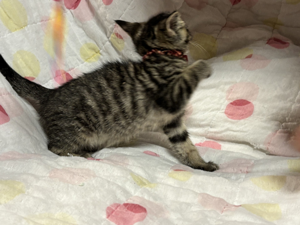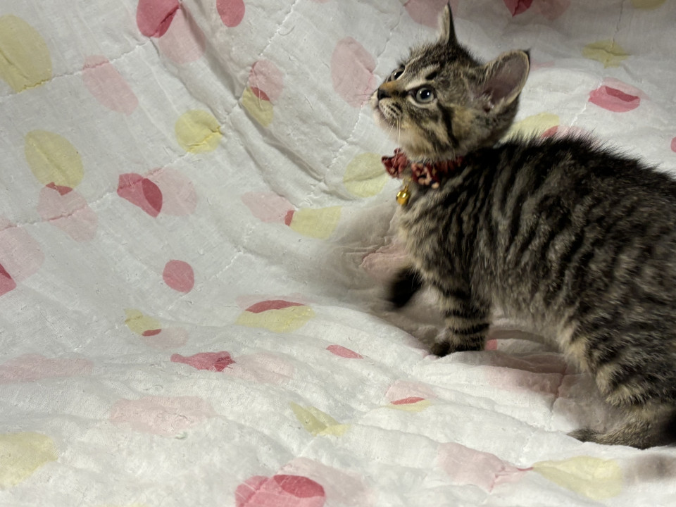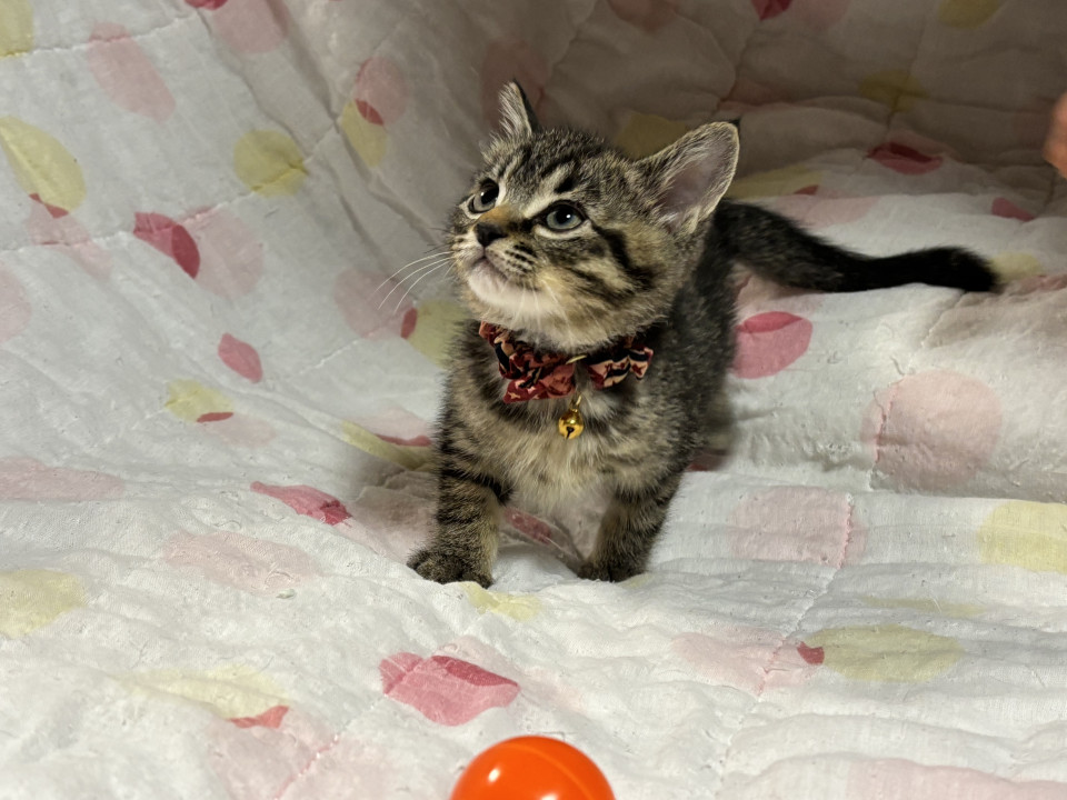 生後2ヶ月から2ヶ月半の男の子。三種ワクチン接種一回目済み、バイコックス予備駆虫済み、ドロンタール予備駆虫投薬済み、ブラベクト滴下済み、検便済み、猫免疫不全・猫エイズ共に陰性