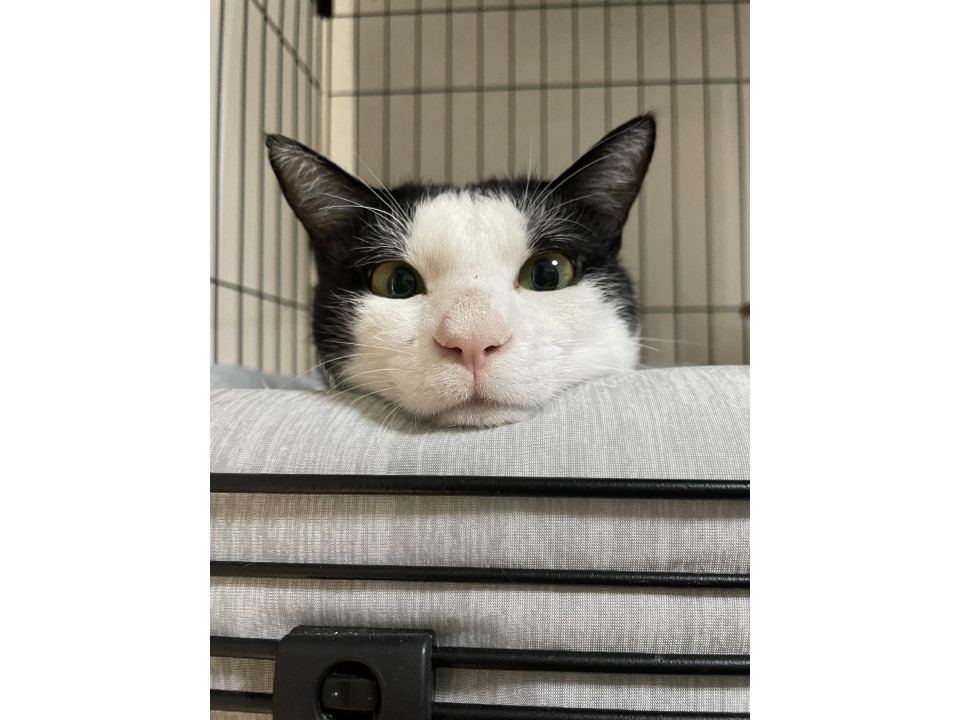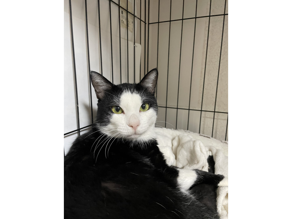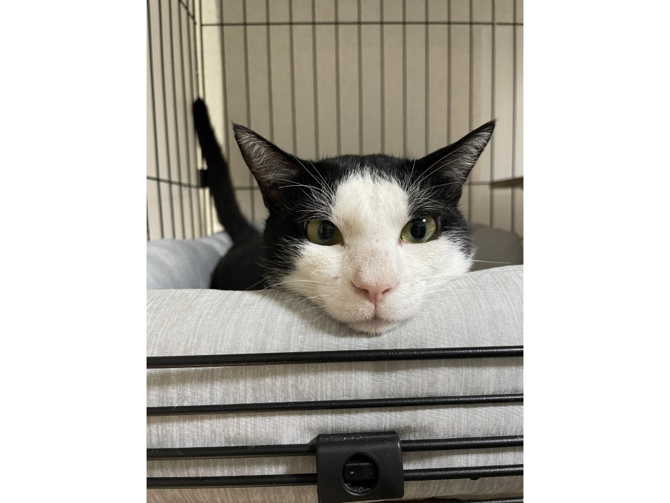 推定2歳くらいのシロクロの男の子です