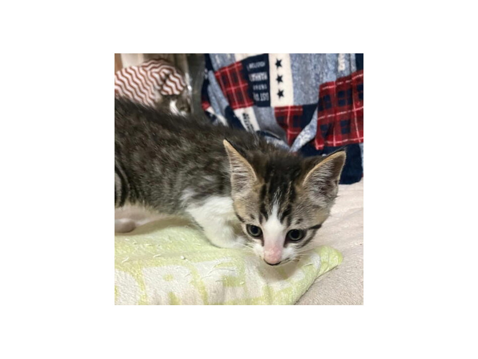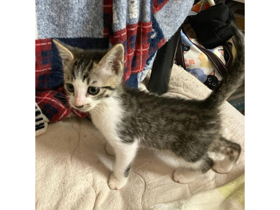 まだ目が開いたばかりの頃に、兄妹で保護依頼がありました。掲載中のキジトラの女の子、ハチワレの男の子と兄妹です。