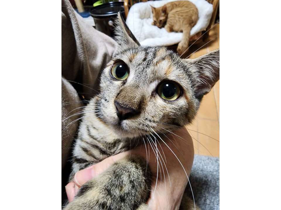 🍀子猫たちは保護当初、新しい環境と初対面の人を怖がりましたが、小麦ちゃんが一番に新しい環境に慣れて、一緒に保護した兄妹猫をリードしてくれていました。