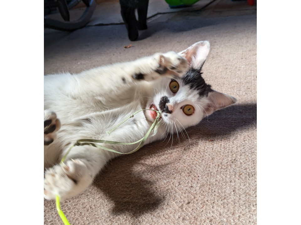 生後2ヶ月で性格はまだ発展途上ですが、好奇心旺盛で、遊びも甘えも一生懸命な女の子です。