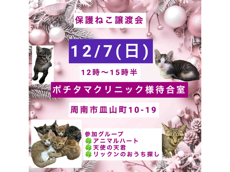 12月7日周南市皿山町ポチタマクリニック様での譲渡会に参加予定ですが、個別のお見合いにも対応します。