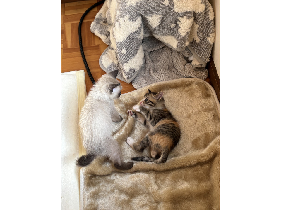犬の散歩中、突然犬が草むらに突進して、子猫の鳴き声が聞こえ、草むらの中に乳飲み子猫が2匹落ちていました。少し待っても母猫が来る様子はなく、そのままだと死んでしまうため保護し、ずっとの家族を探すことにしました。