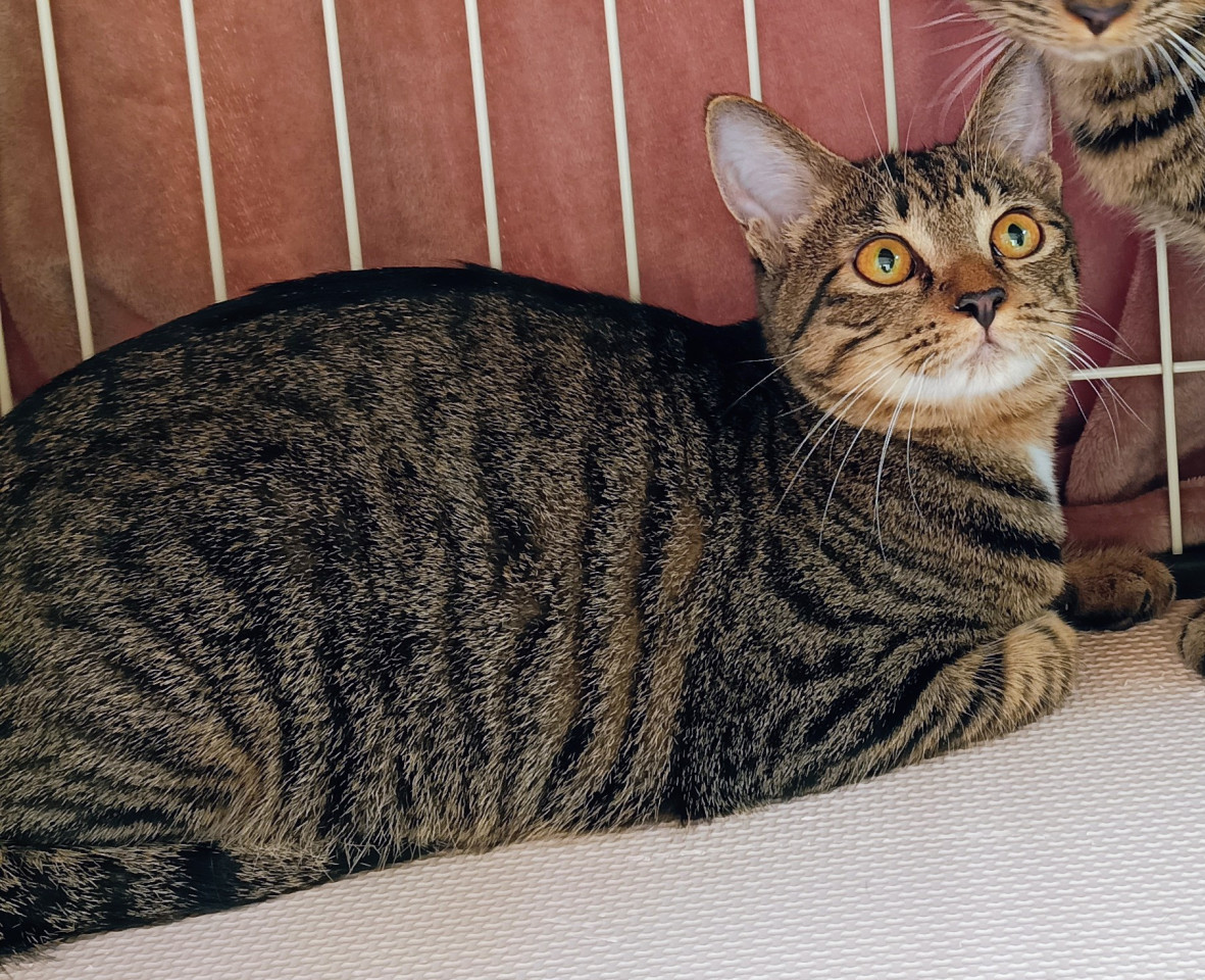 譲渡会では縮こまっていますが、猫も人も大好きです。