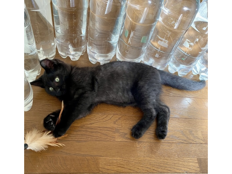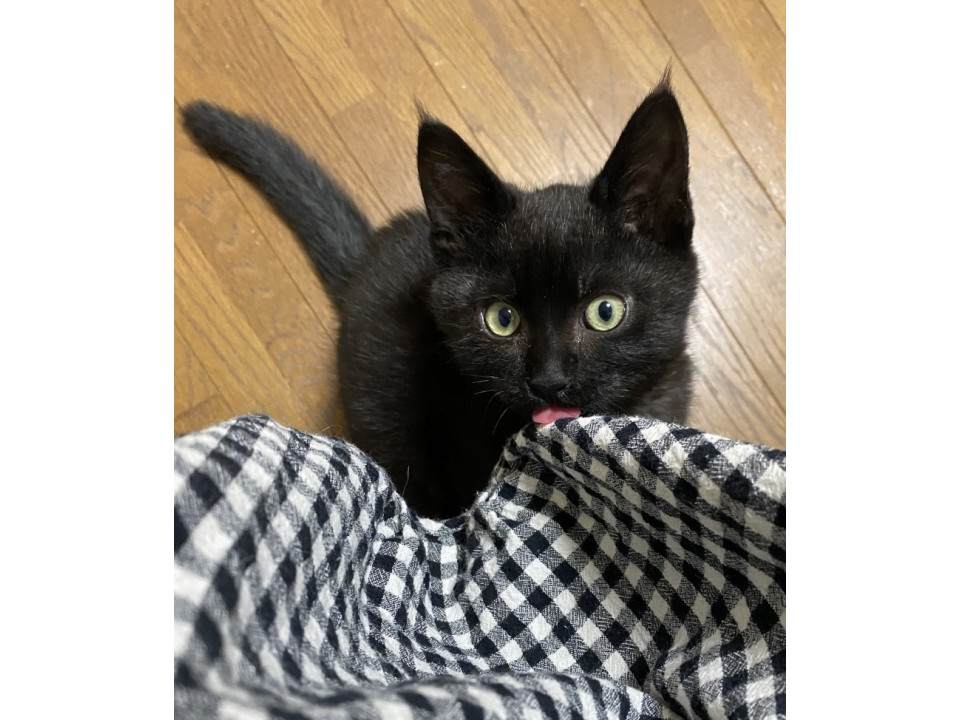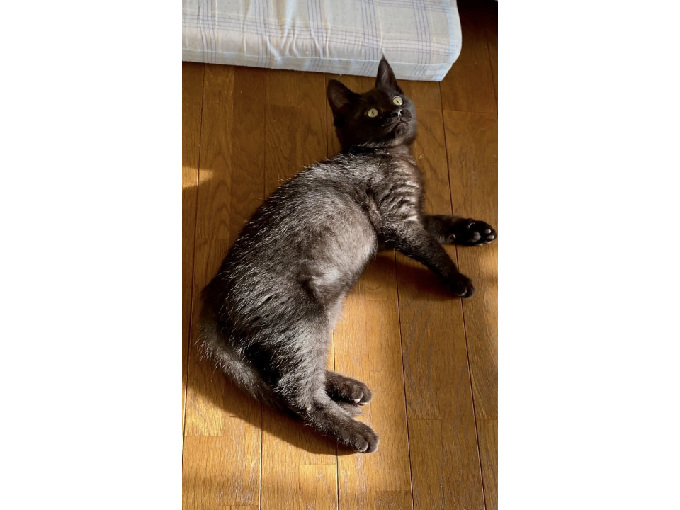10月の後半、突然家の裏から子猫の叫び声が響き渡り、鳴き続けるので心配で家族と探しましたところ、小さな黒い子猫クーちゃんを見つけました。