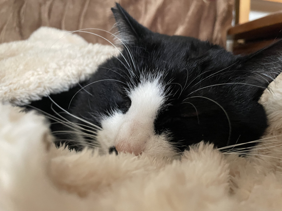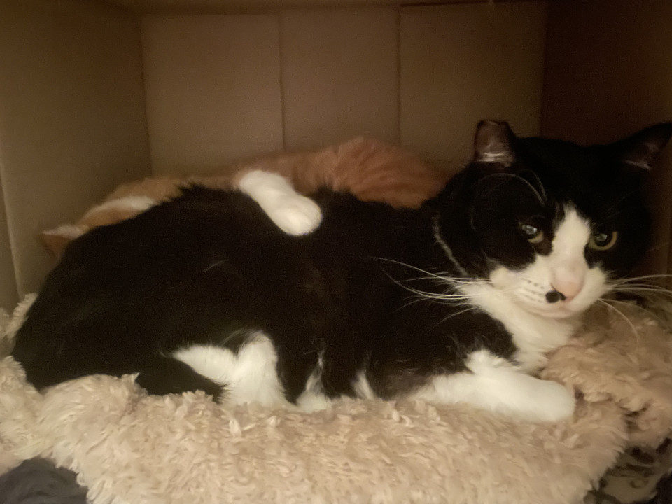うちの先住猫たちに遠慮がちな、とてもいい子です。