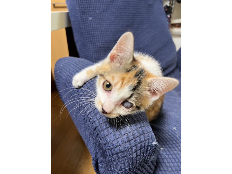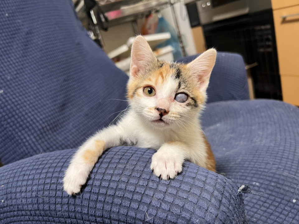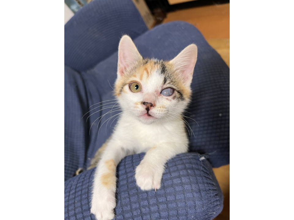 母猫と一緒にいましたが、目に感染・炎症を起こしひどい状態だったため保護されました。