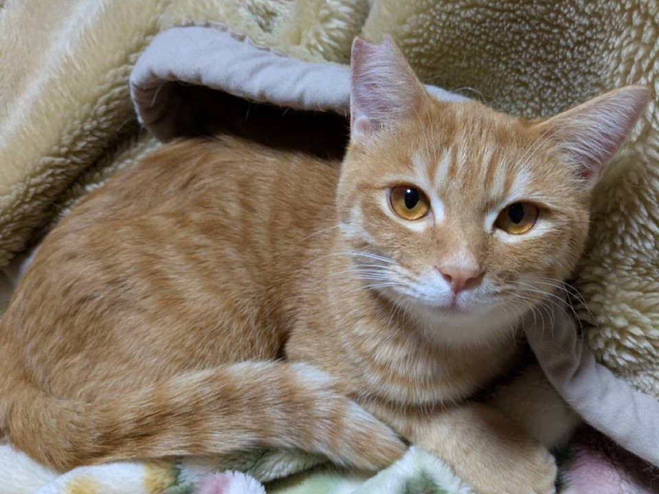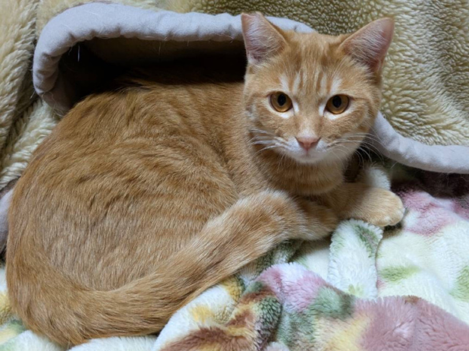 兄弟で似ていますが、桃太郎くんは目が丸く小顔なアイドルっぽい優しい雰囲気です。人と一緒の室内での生活にも慣れ、撫でると甘えます。