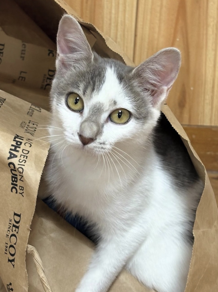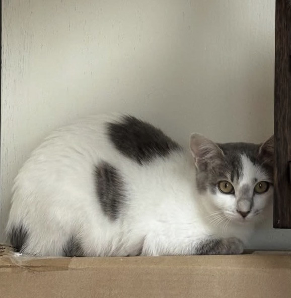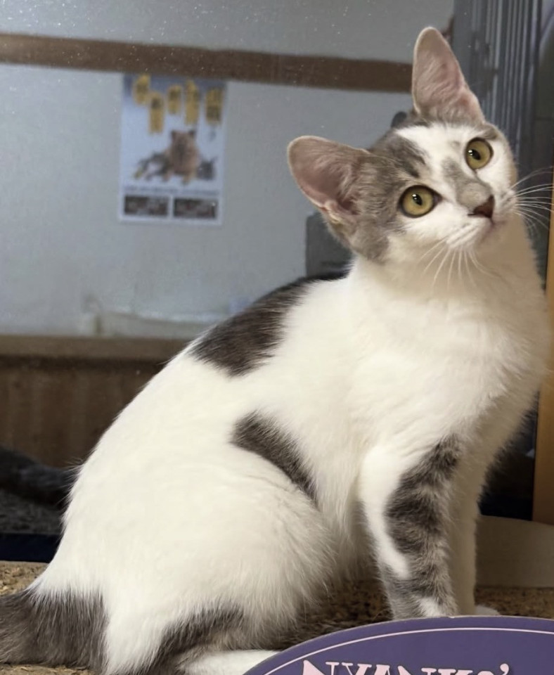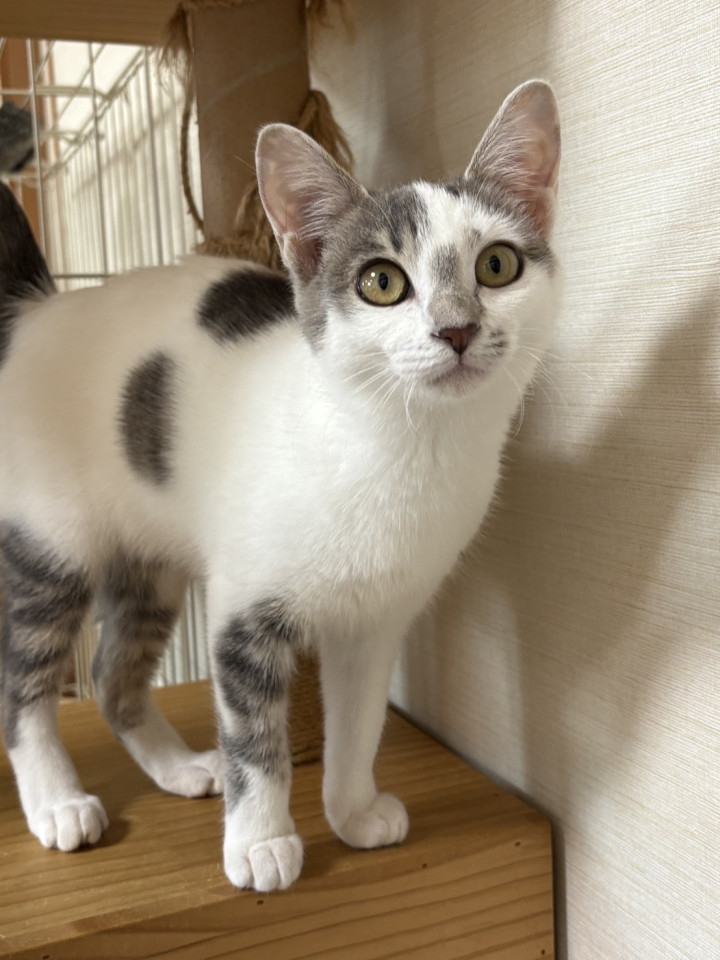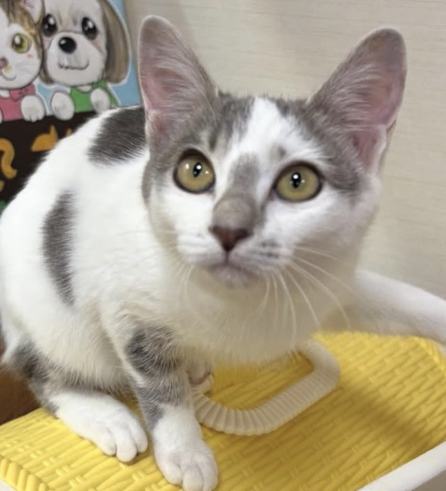 毛色 白グレーの魅力柄です。