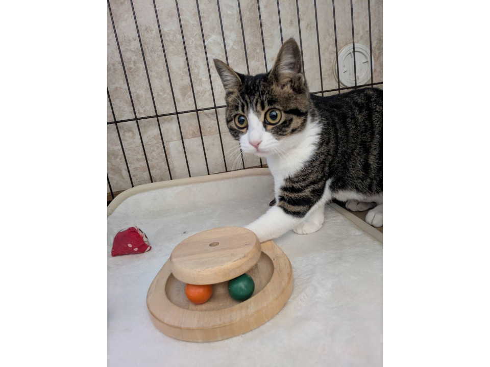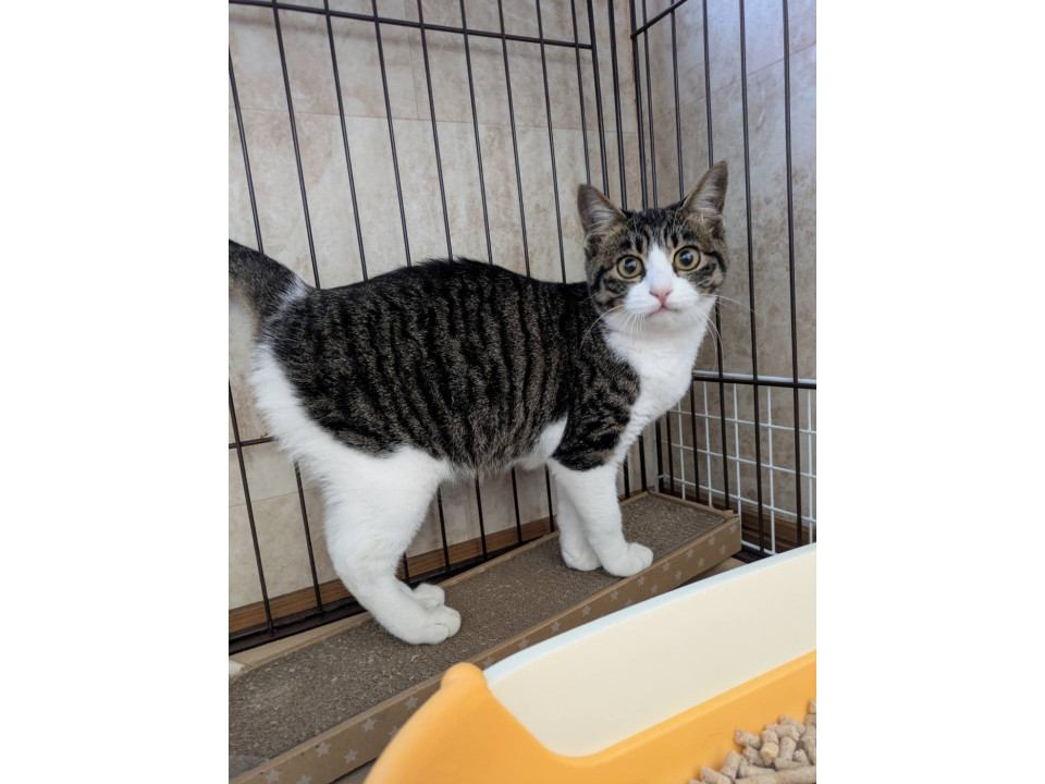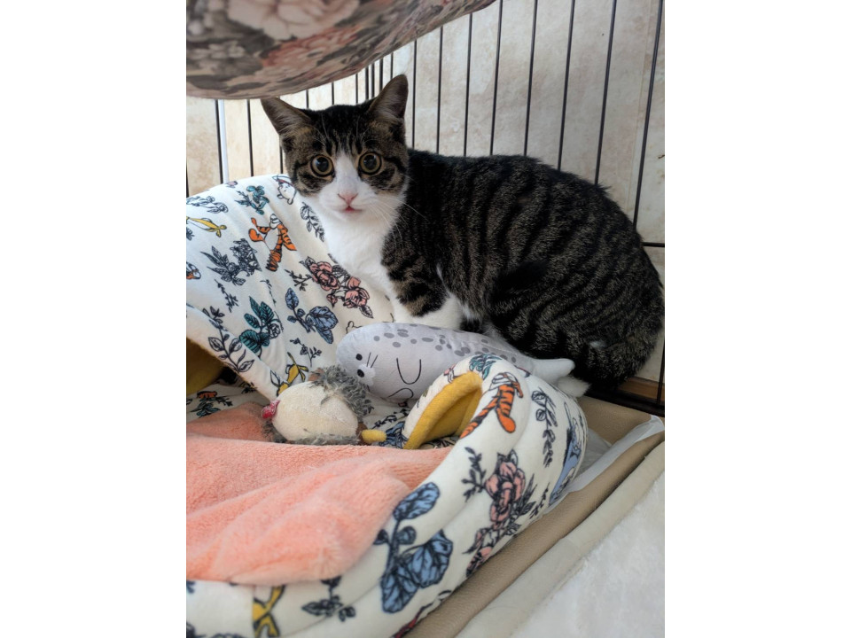 納屋に住み着きエサをもらっていたので人馴れしています。とても温和で餌やりさんがおもちゃで遊んであげたりしていたので膝に乗ることもあるそうです。