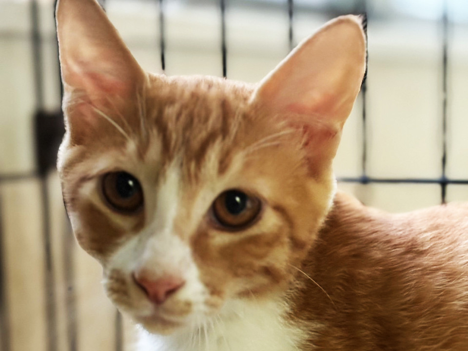 【性別:年齢:被毛】♂:7ヵ月半:茶白猫